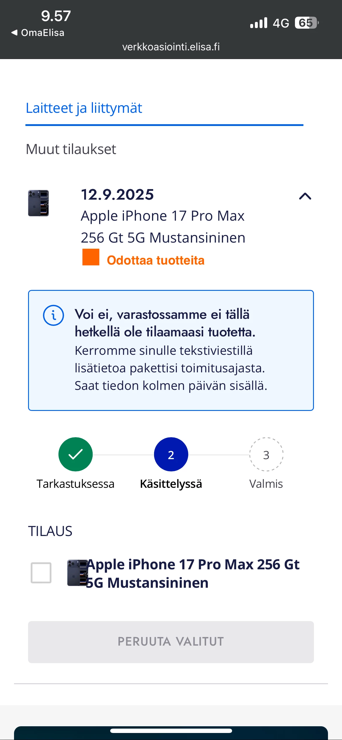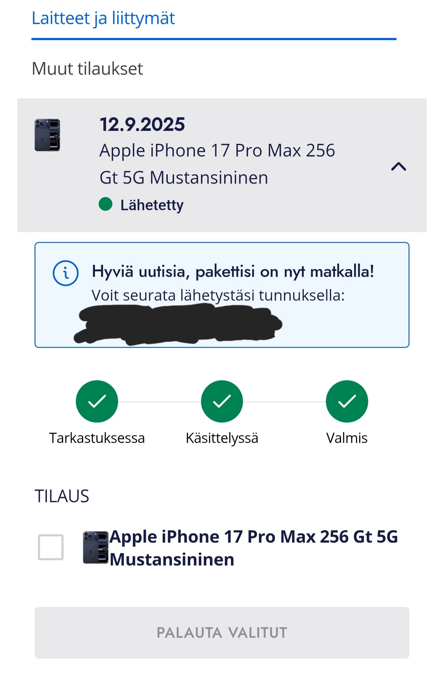 Laitteita toimitetaan yhdestä toimitusjonosta tilausjärjestyksessä. Kun tilauksesi on käsitelty, siirtyy se toimitusjonoon.