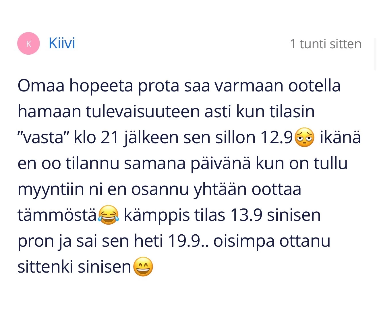 Emme ota kantaa tilausten jonopaikkoihin julkisesti tai yksityisviestein. Tilauksen tarkka aikaleima ei kerro tilauksen tarkkaa paikkaa toimitusjonossa, sillä tilauksen etenemiseen vaikuttaa myös esim. osoitetietojen tarkistus.
