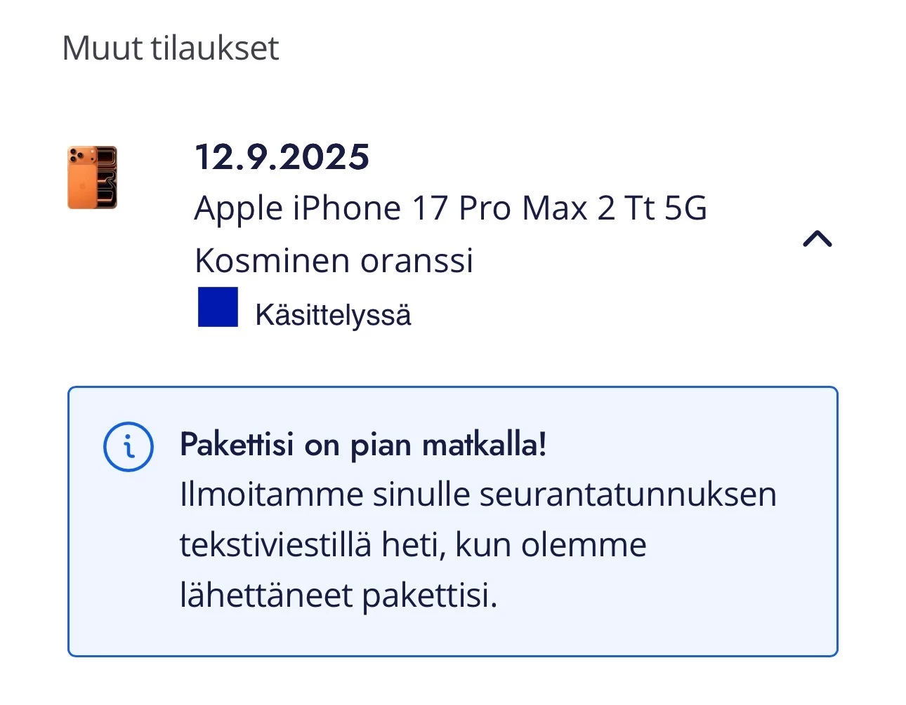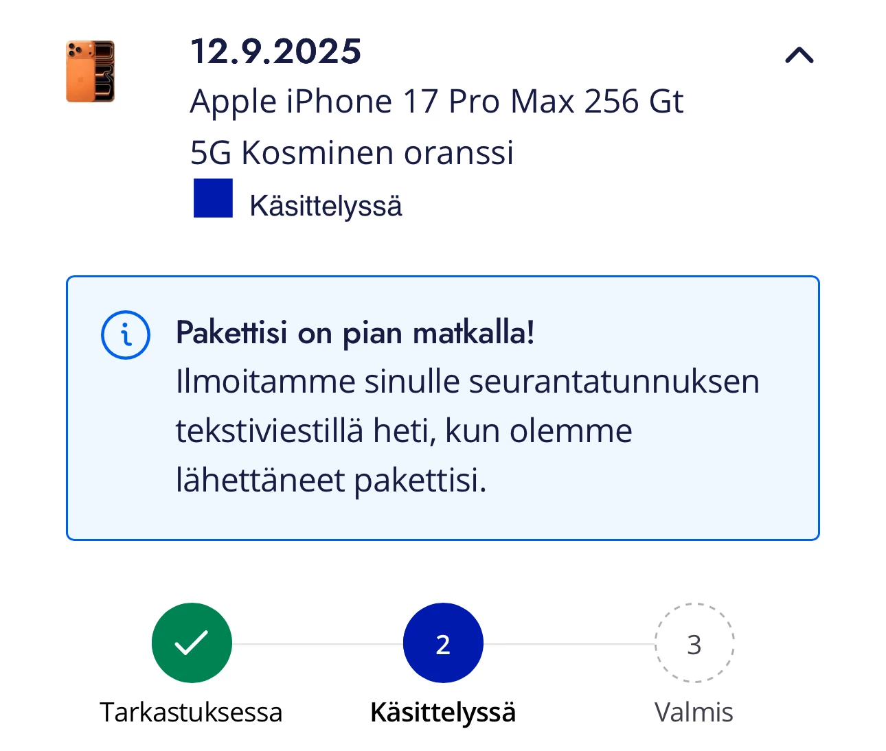 Laitteita toimitetaan yhdestä toimitusjonosta tilausjärjestyksessä. Kun tilauksesi on käsitelty, siirtyy se toimitusjonoon.