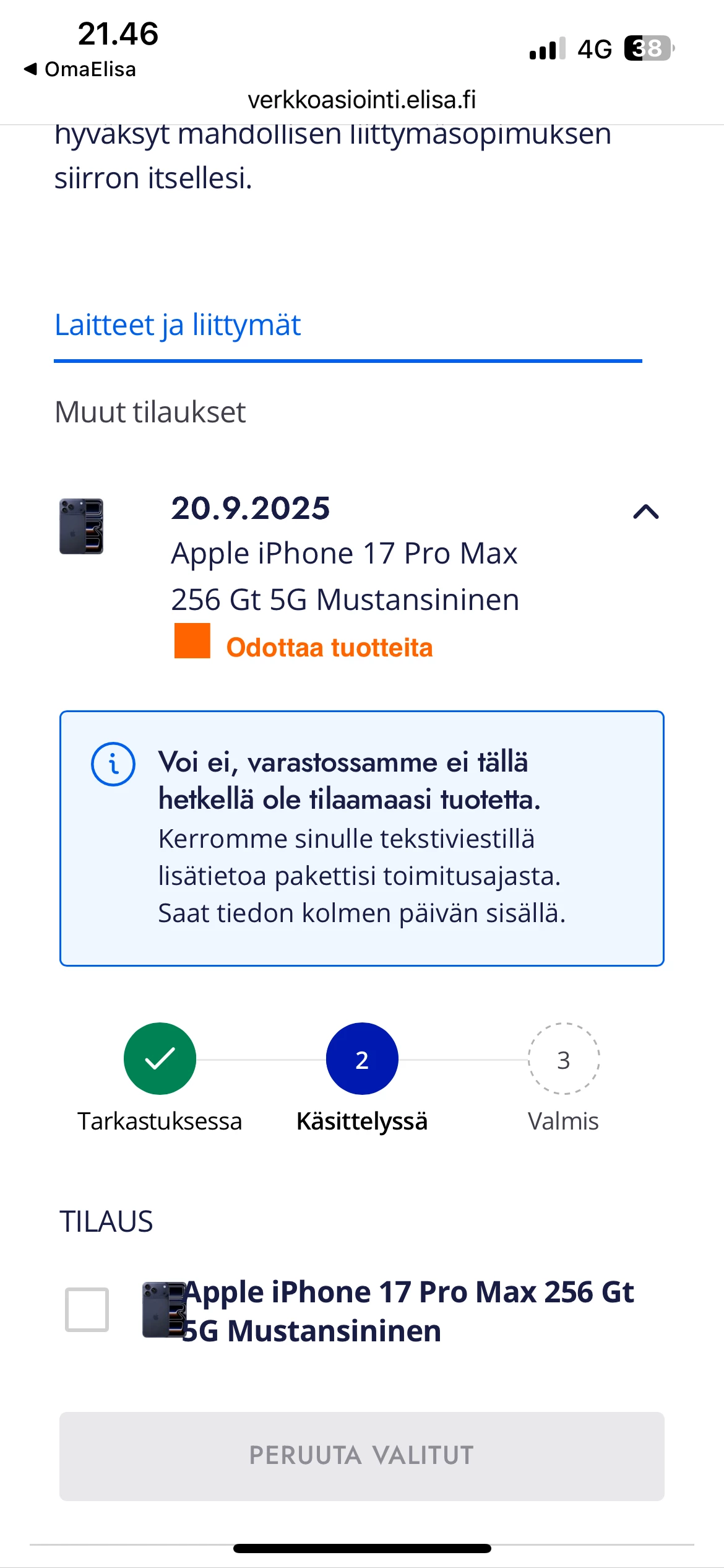 Toimitus-ja saatavuustilanteen päivitetty tieto 21.10.2025