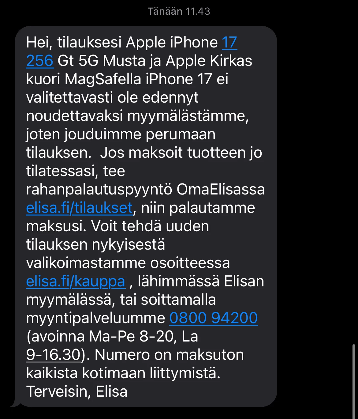 Toimitukset alkavat perjantaina 19.9.2025.