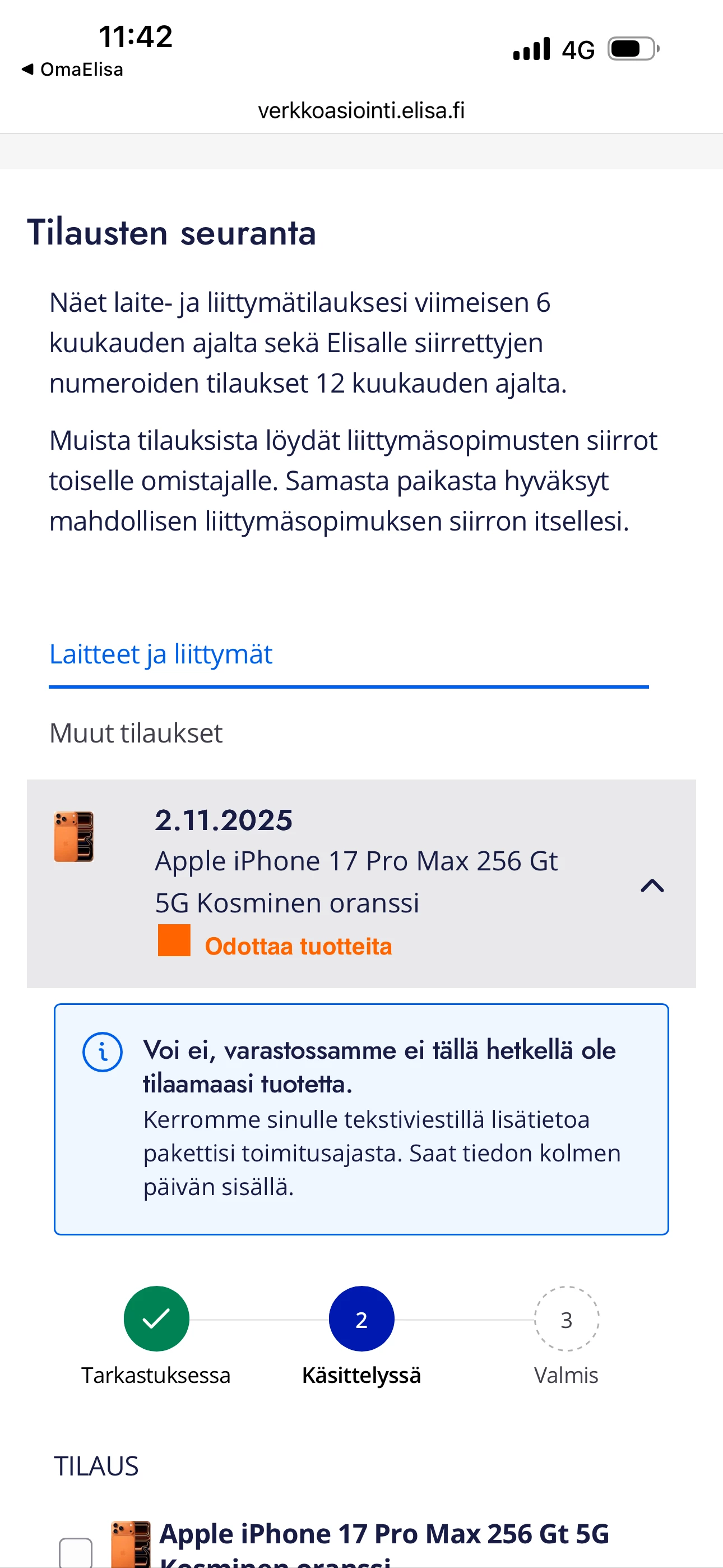 Laitteita toimitetaan yhdestä toimitusjonosta tilausjärjestyksessä. Kun tilauksesi on käsitelty, siirtyy se toimitusjonoon.