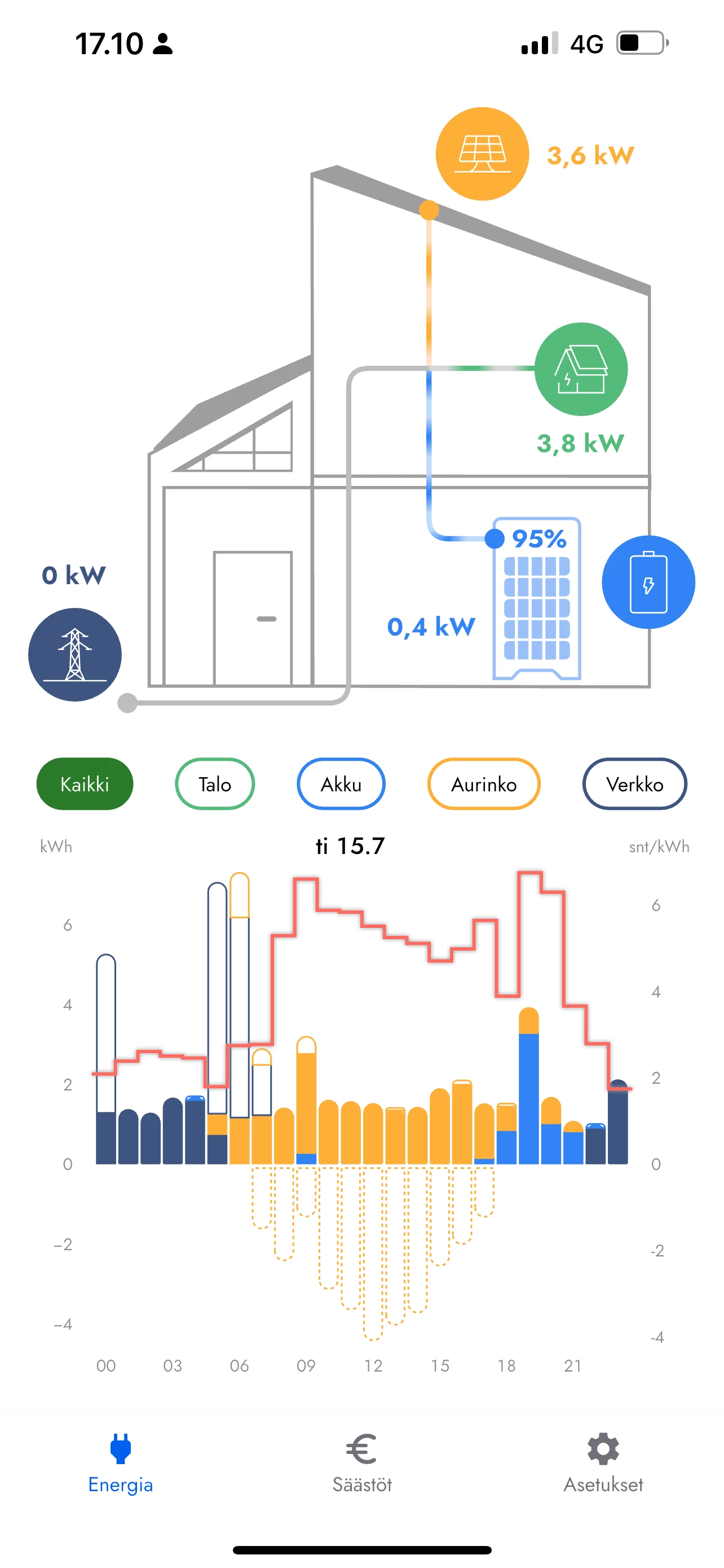 Mistä johtuu tämä 6 kwh:n kulutuspiikki. Toistunut useampana päivänä. Kesällä normikulutus 1-2 kWh ja akku täynnä.