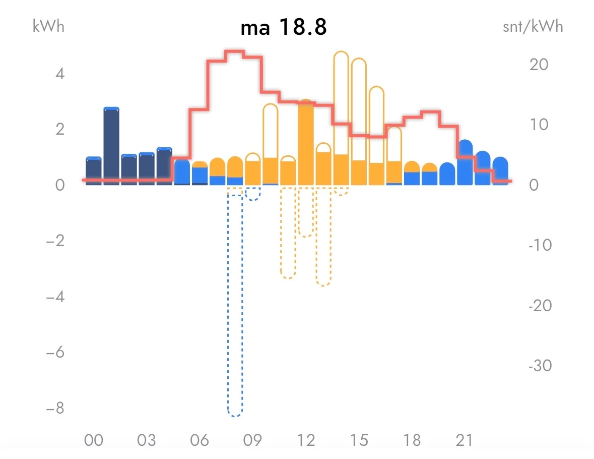 Viikonlopun nollahintojen jälkeen maanantai lähtee käyntiin 22snt aamuhinnoilla. Sovellus näyttää että akku on varautunut tähän päivään vain 66% latauksella vaikka selvästi olisi tarve ollut täydelle varaukselle. Miksi näin kehnosti ohjaus toimii?