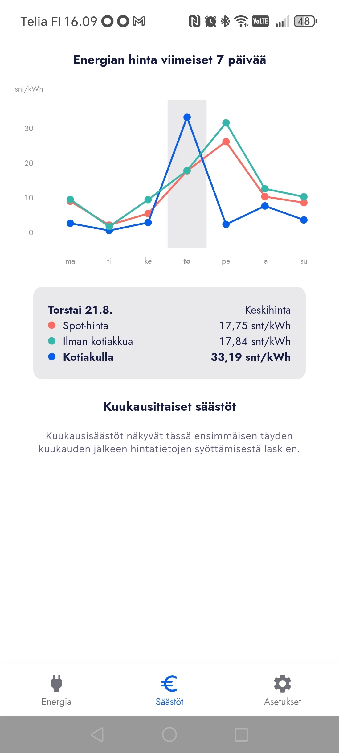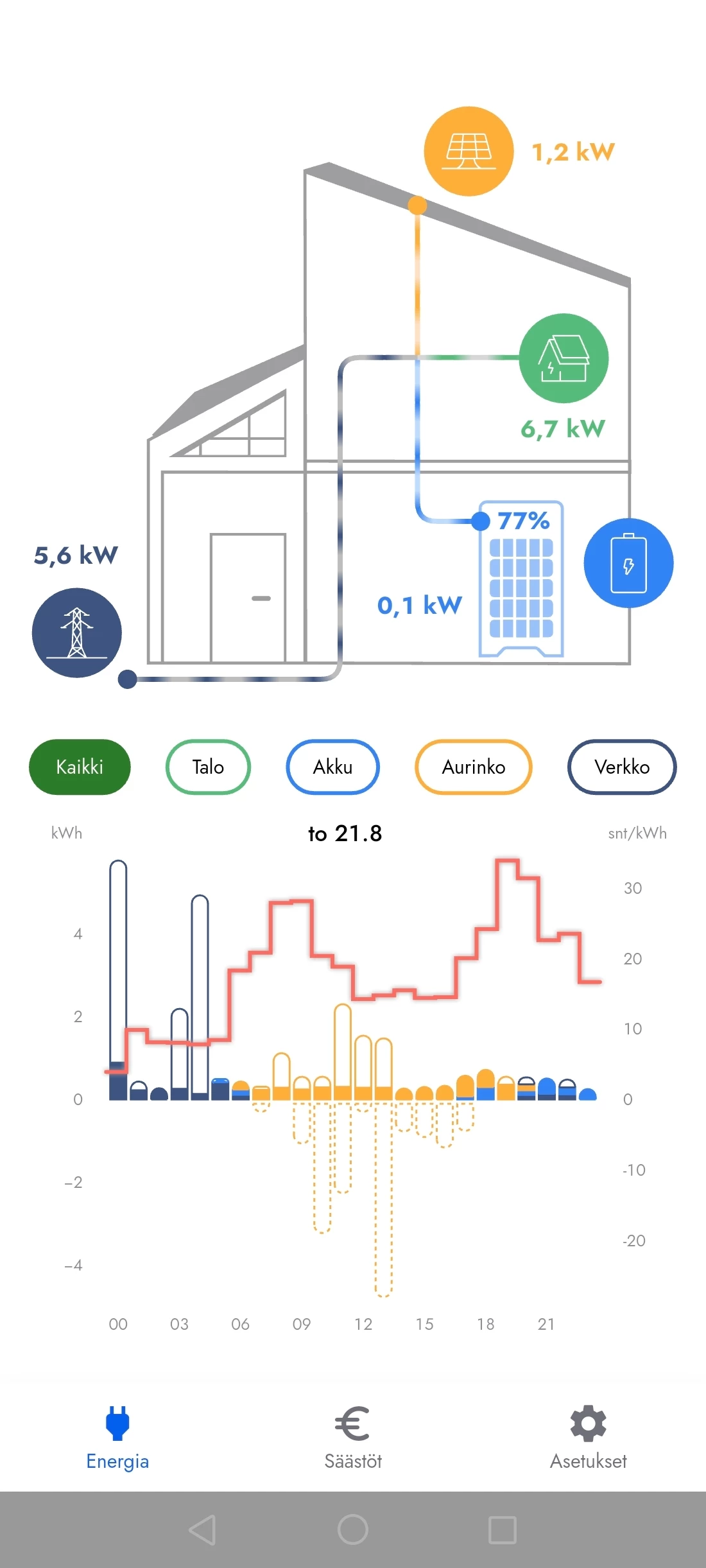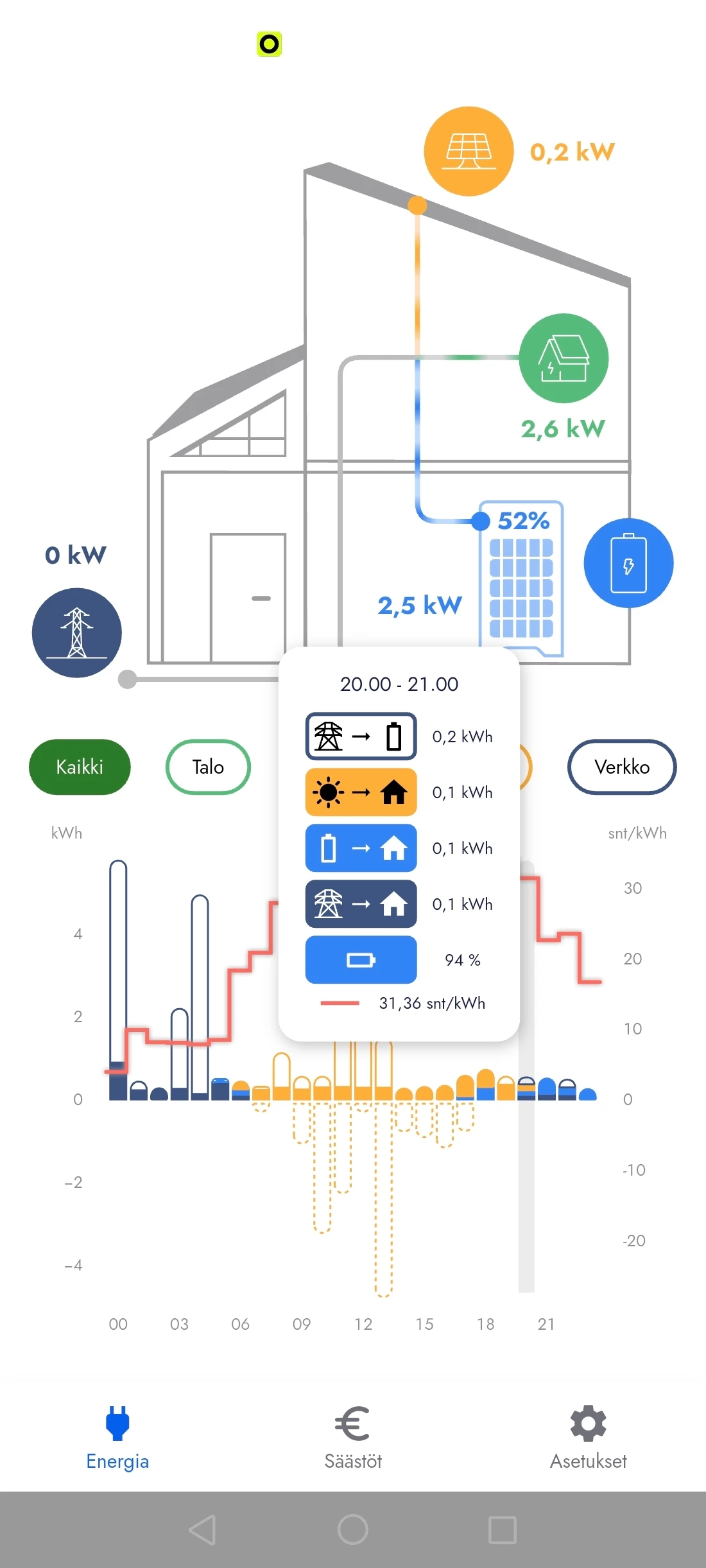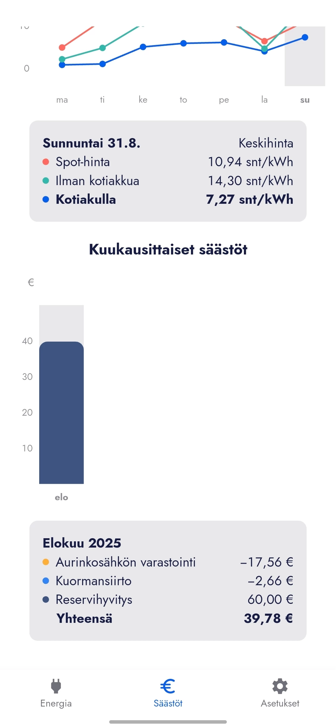 Hei! Toimiiko säästölaskuri oikein, jos koko vuorokausi on menty aurinkopaneeleiden tuotolla ja laskuri näyttää summat: