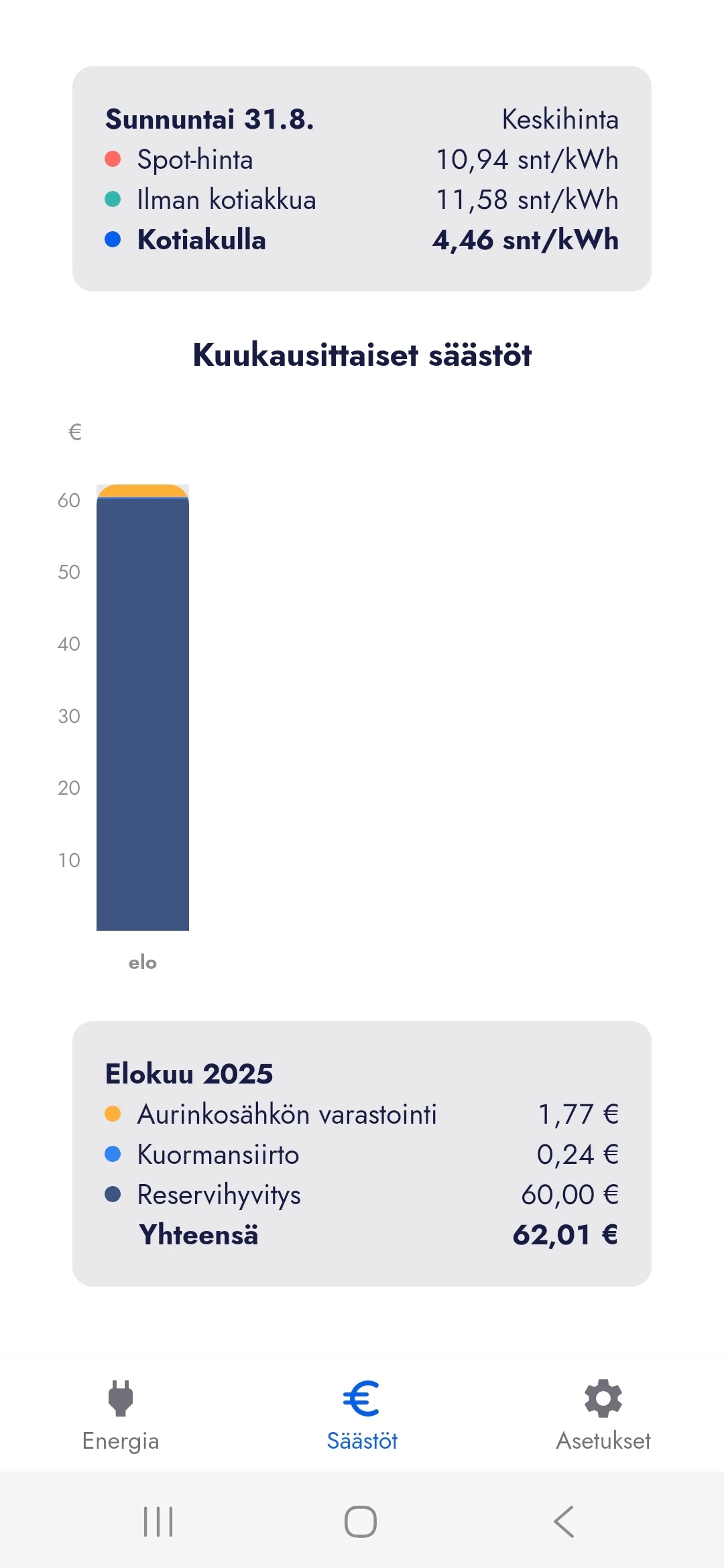Kotiakulla 5,82 snt/kWh