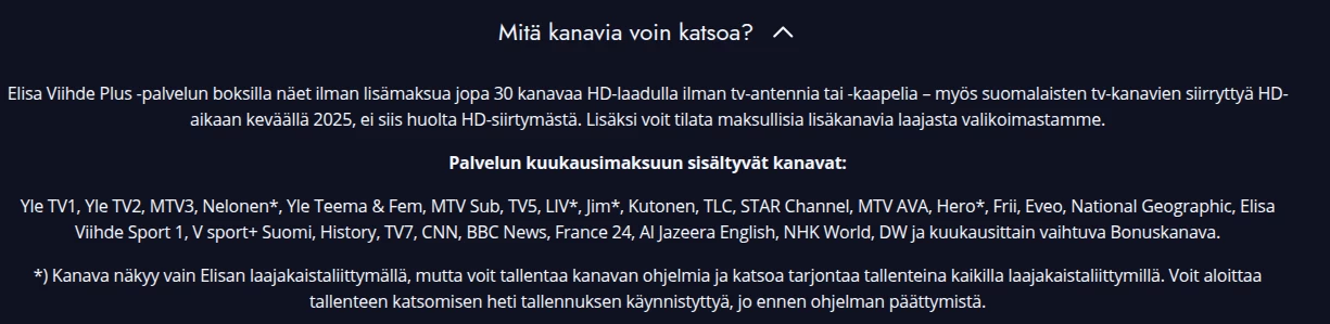 Muutos tuo merkittävän parannuksen erityisesti Elisa Viihde Plus -asiakkaillemme, joilla ei ole antenniviritintä digibokseissaan. Kanavat toimitetaan OTT-muodossa, mikä mahdollistaa joustavamman katselun ilman perinteistä antenni- tai kaapeliyhteyttä.