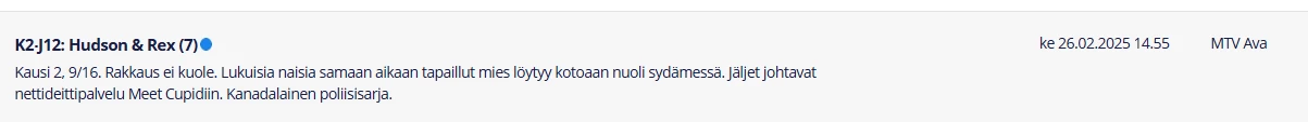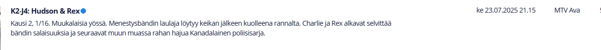 Varsin riittävästi. Katselin tässä parin muunkin tahon ohjelmaoppaita eikä niissäkään ole tarkennettu mistä elokuvasta on kyse. Toisin sanoen pelkkä “Wallander” lukee siis muissakin ohjelmaoppaissa. 🤔