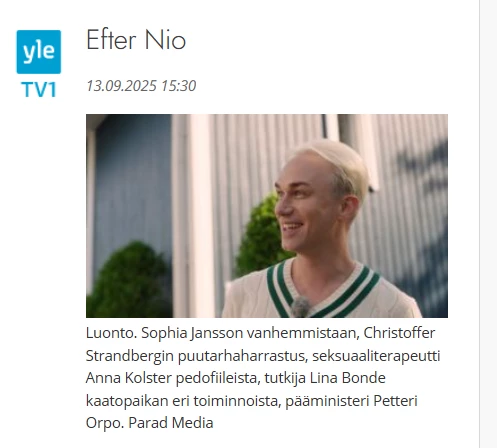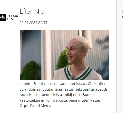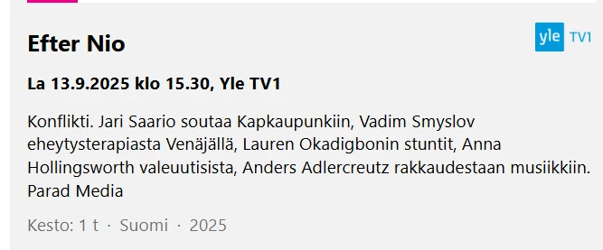 Star channelin ja Subin sarjoissa on vain yleiskuvaus sarjoista.Pitäisi olla season/episode ja kuvaus siitä mitä kyseisessä jaksossa tapahtuu.