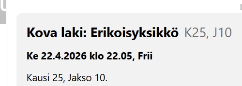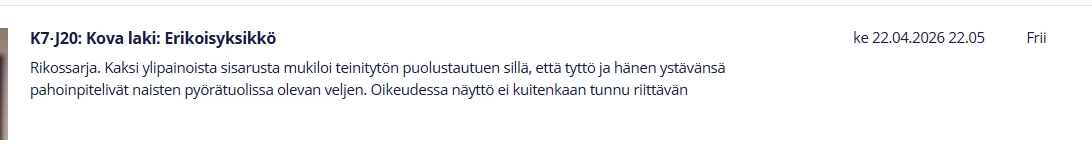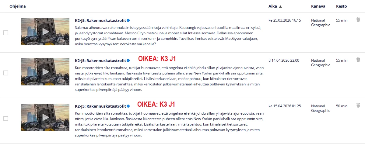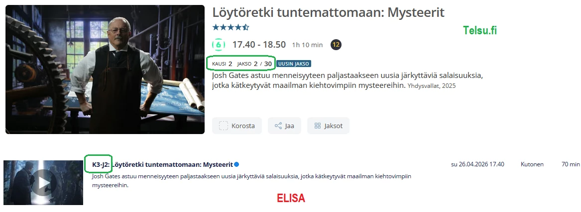 Star channelin ja Subin sarjoissa on vain yleiskuvaus sarjoista.Pitäisi olla season/episode ja kuvaus siitä mitä kyseisessä jaksossa tapahtuu.