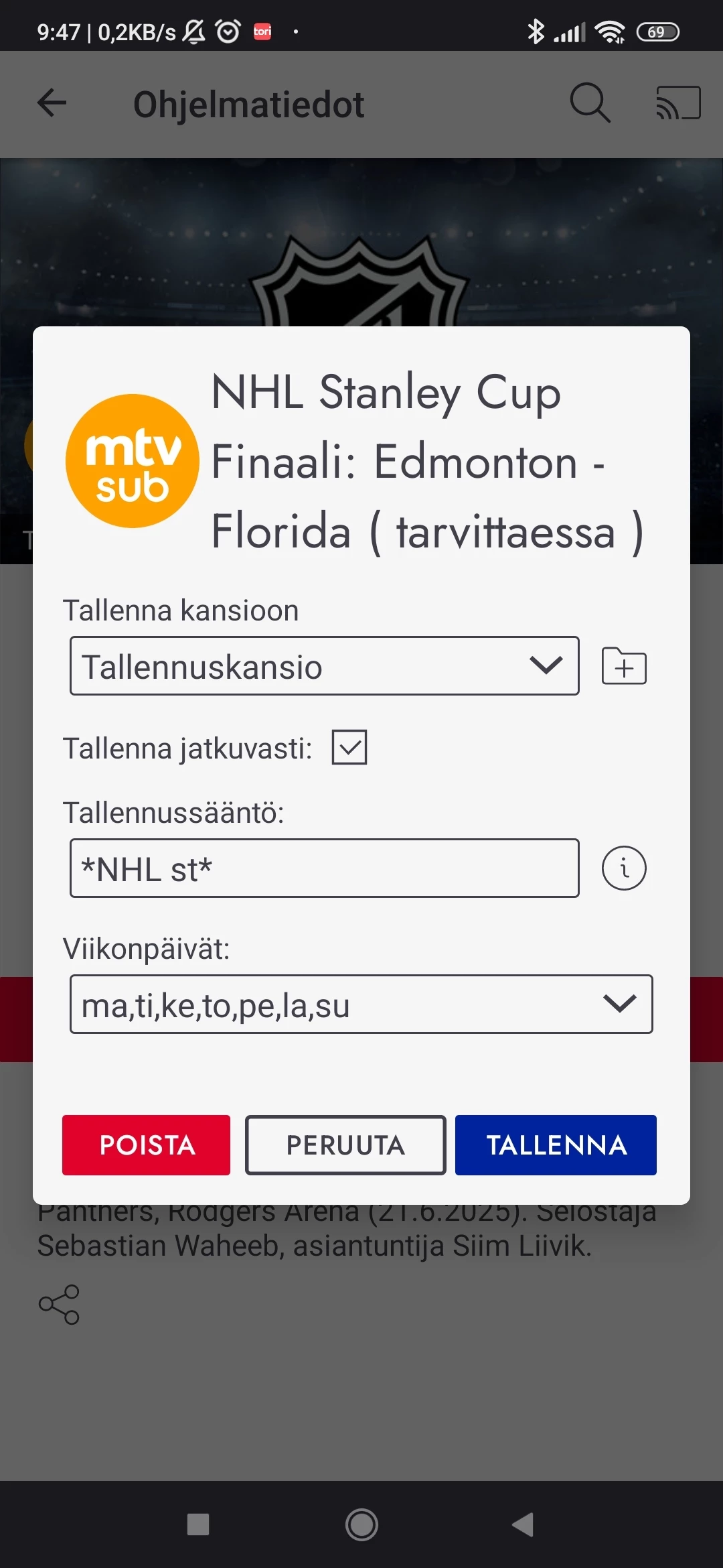 Harmi että tuossa tallenteen näkymisessä oli tullut jotain viivettä, pahoittelut aiheutuneesta haitasta. 🙏 Joskus voi olla että tallenne tulee juurikin tuolla tavalla viiveellä näkyville, varsinkin jos ohjelma on venähtänyt odotettua pidemmäksi.