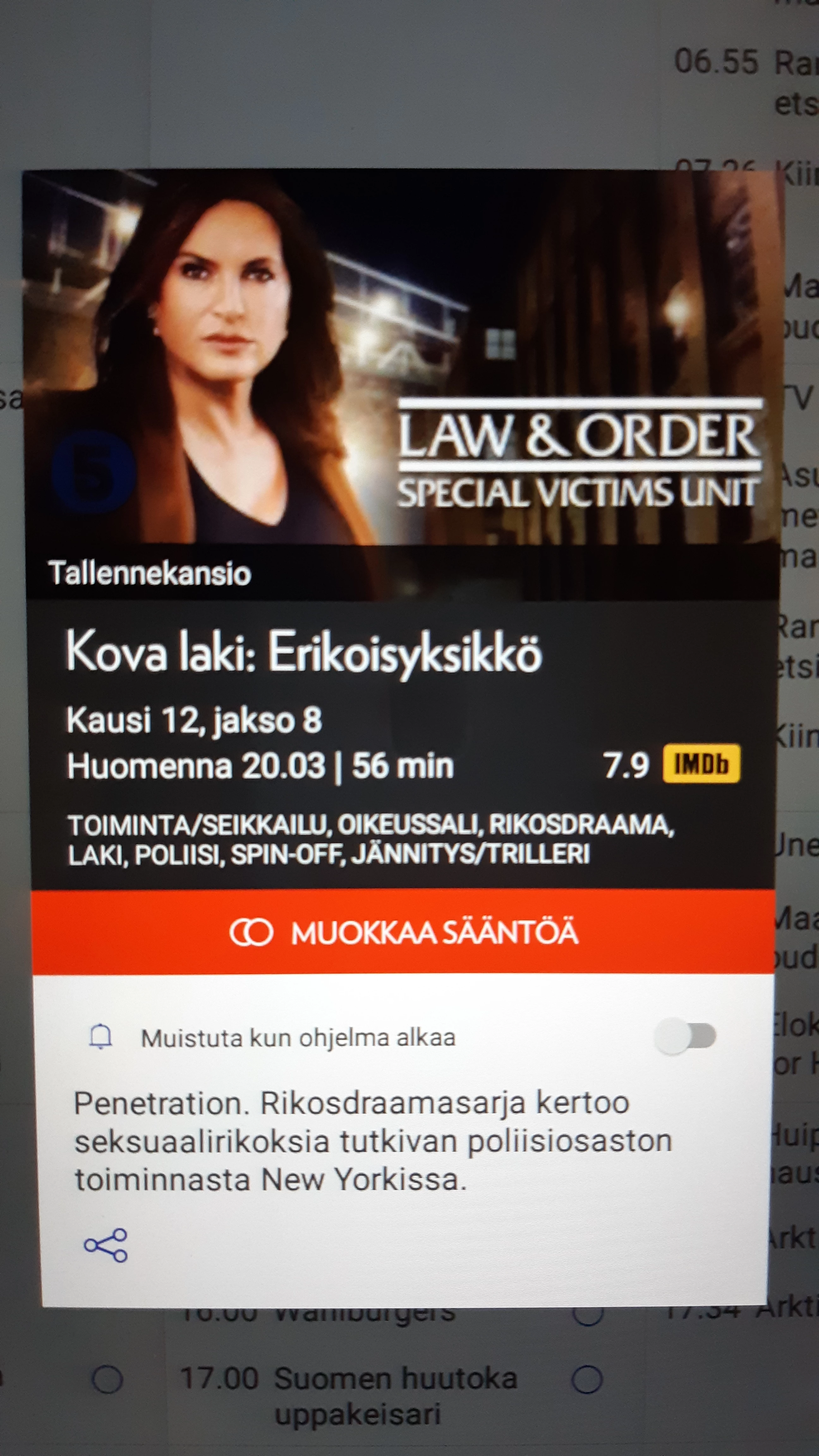 Hei, miksi Android TV sovelluksesta on sarjojen ohjelmatiedoista hävinnyt tieto siitä mikä kausi ja jakso on kyseessä, esim Kova Laki:Erikoisyksikkö sarja?