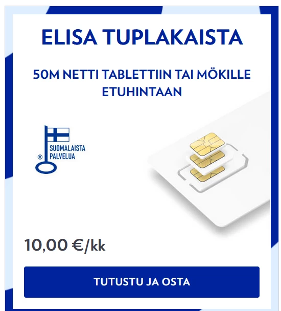 Elisa ei nykyään myy enää mokkulaliittymissä 50 Mbps -kaistaa. Halvin on 29,90 euroa maksava 100M. Koska 4G on jaettua kaistaa, makisminopeuksiin päästään harvoissa tilanteissa. Kuitenkin monelle asiakkaalle myös riittäisi hitaampi 50 Mb/s netti joka ei edes ole kovinkaan hidas.