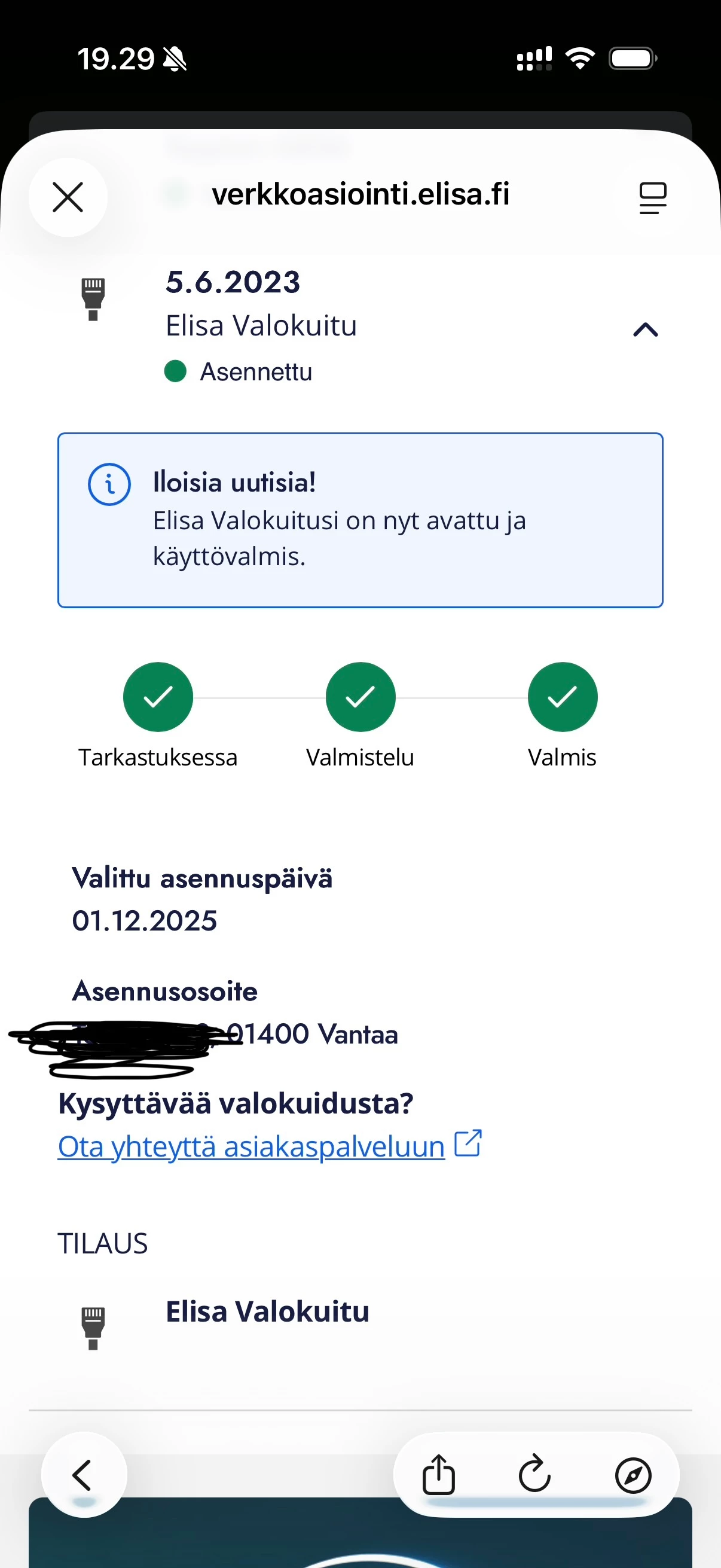 Elisa Valokuitusi on nyt avattu ja käyttövalmis.
