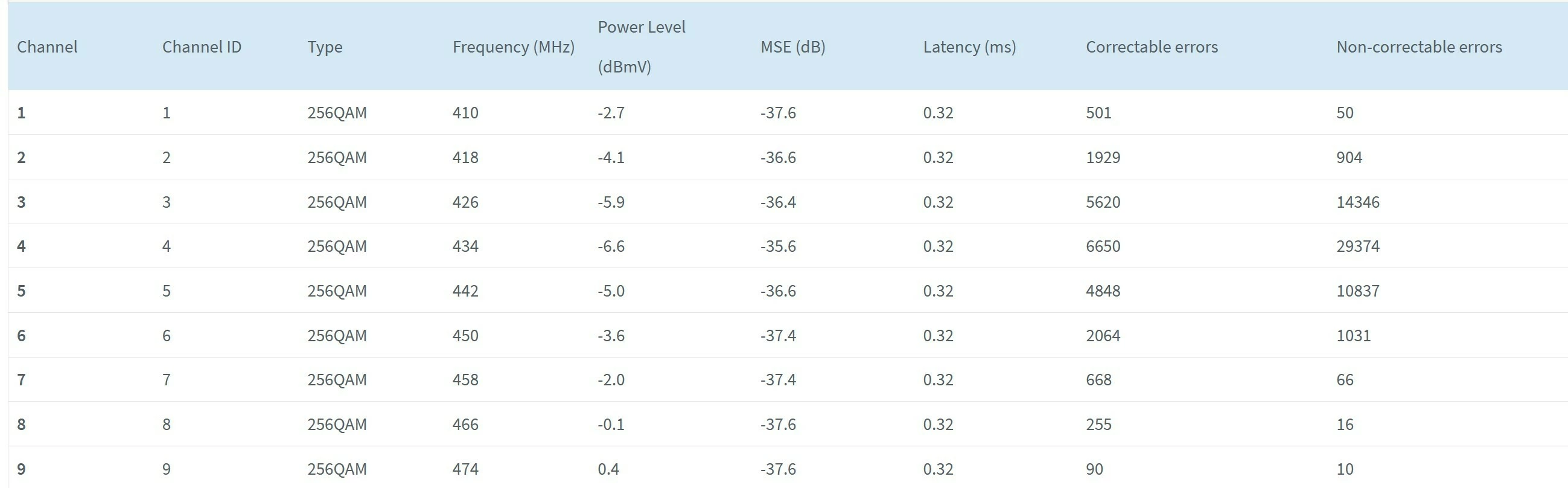 Miten teillä jäkeläisillä kaapeliverkossa olevilla on verkon toimivuus ja kanavien arvot? Itsellä alkoi arviolta parisen viikkoa sitten netti hidastelemaan ja sivujen sisältöä jää latautumatta. Latausnopeus putosi reilusta 900 mb:stä 500-600 mbps tienoille ja mittausvaiheessa poukkoilee villisti. Ongelma ei ratkennut Windowsin uudelleenasennuksella, ei modeemin resetoinnilla, eikä vikailmoituksen aspankaan kanssa. Johdot ja muut on myös tarkistettu, eikä niistä löydy ongelmia. dBmV-arvot oli aiemmin siinä nollan tuntumassa molemmin puolin, mutta nyt alkupään kanavissa on alkanut lähenemään pahimmillaan -14. Korjattuja virheitä aiemmin oli maksimissaan muutama kymmen jossain yksittäisessä kanavassa, mutta nyt on menty jo yli 10000. Samoin korjaamattomia virheitä on pahimmillaan yli 10000. Kaikki uudet ongelmat esiintyy kanavilla 1-9. US-kanavissa on myös yksi muutos, kun kanava 4 vaihtelee väliä 4QAM - 16QAM - 64QAM. Jos ei muilla ole vastaavia ongelmia, niin saa rajattua tätä sitten asuinrakennukseen tai omaan modeemiin (Fritzbox 6591).