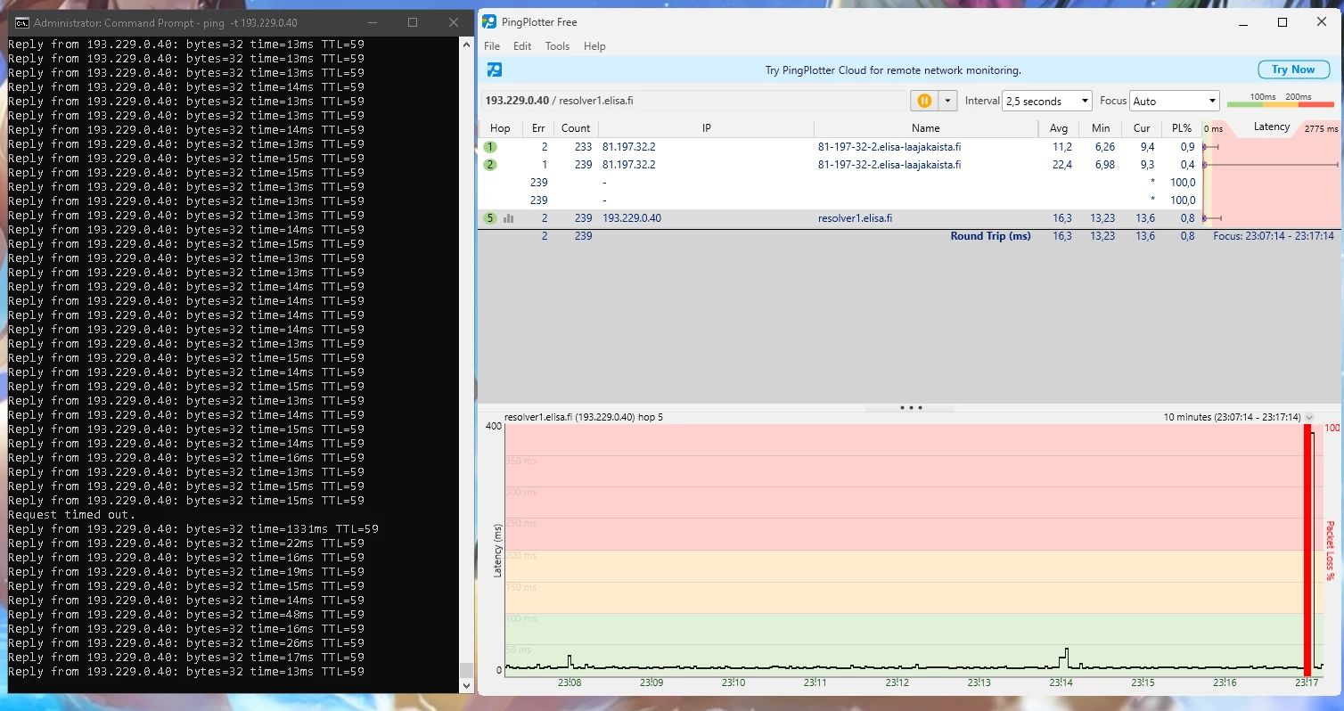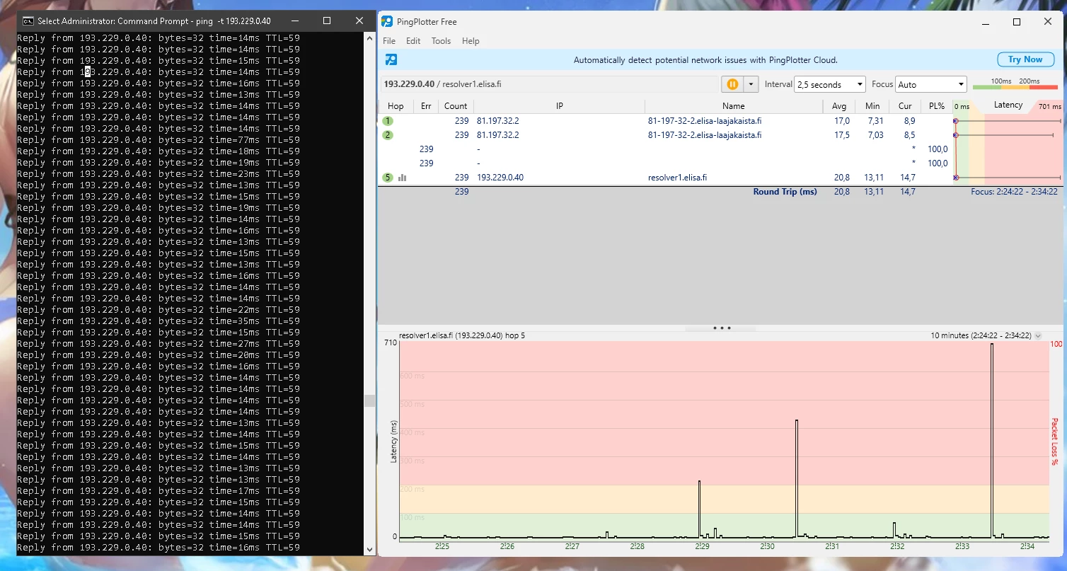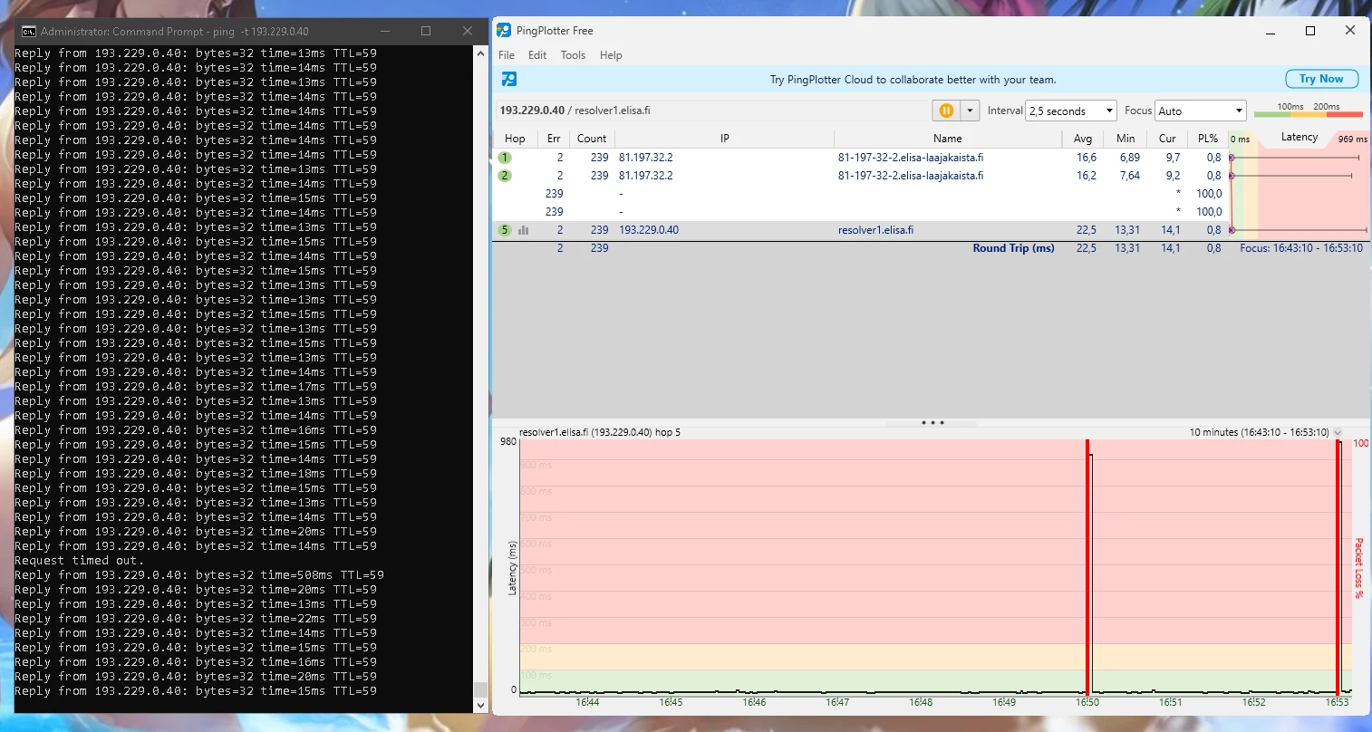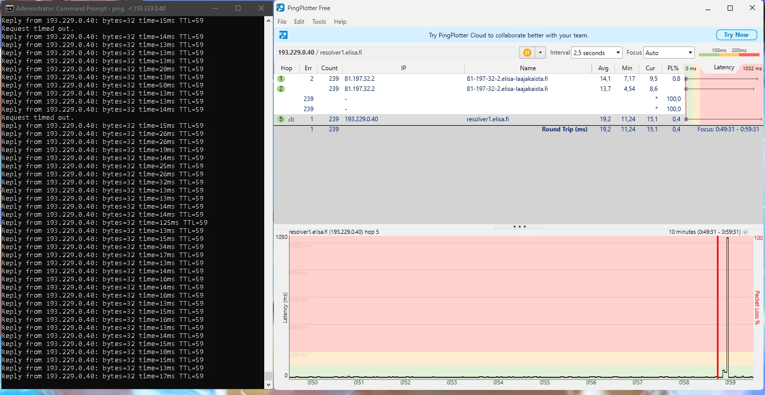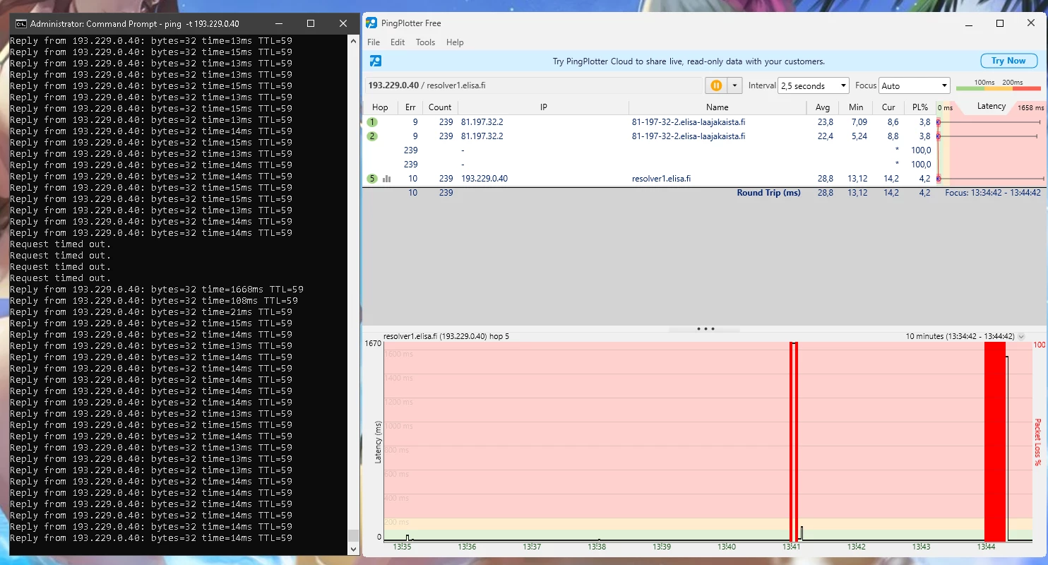 Ja nämä häiriöt jatkunee kohta 2 vuotta. Omalta osalta on kaikki mahdollinen kokeiltu eikä ole korjaantunut. Olisi kiva tietää miksi asiakaspalvelu vaan jarruttaa asiaa eikä yritä auttaa millään lailla vaa tarjoaa irtisanomista tai vaihtamista 5G:hen.