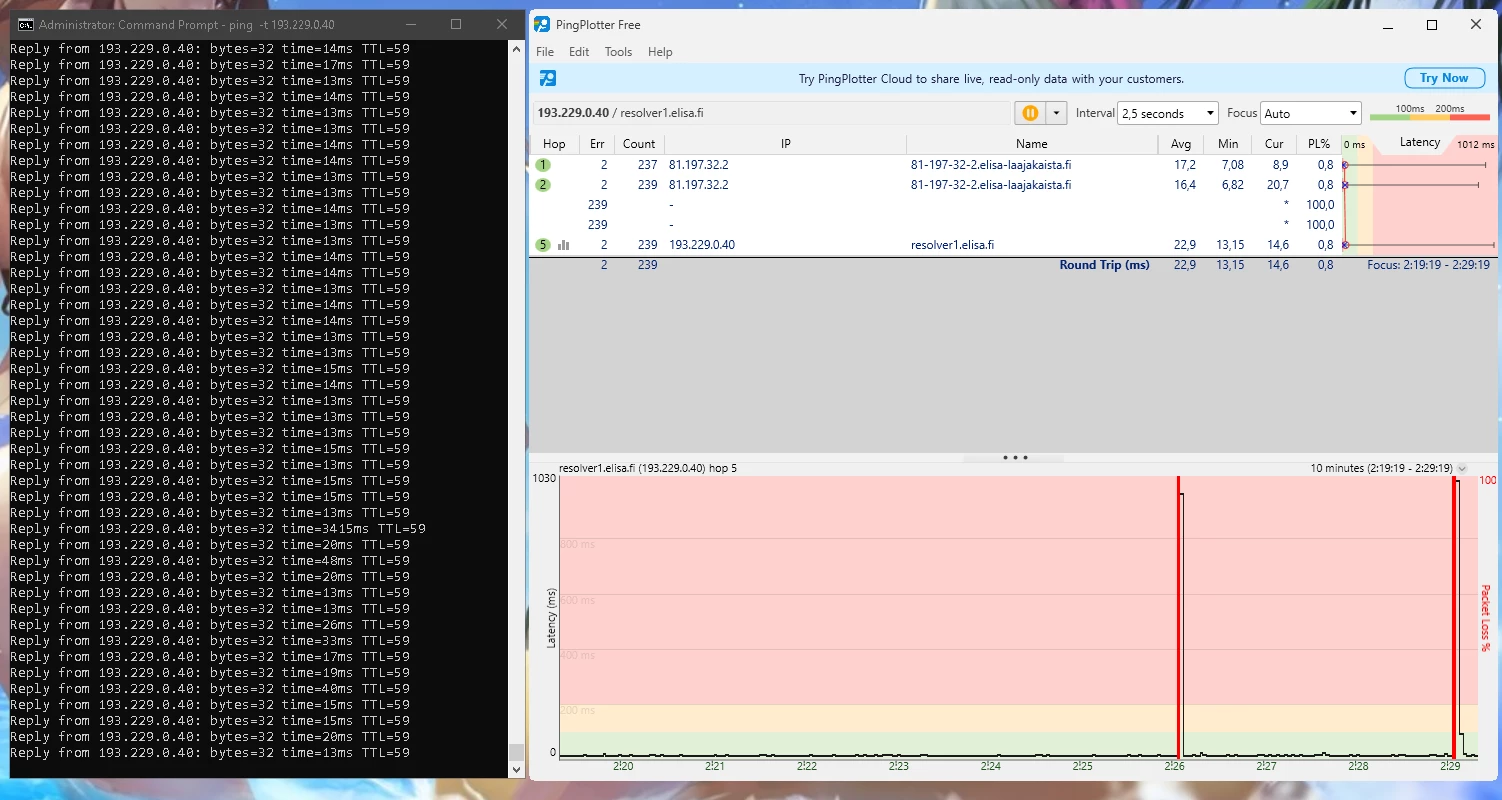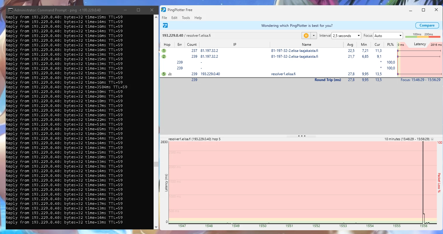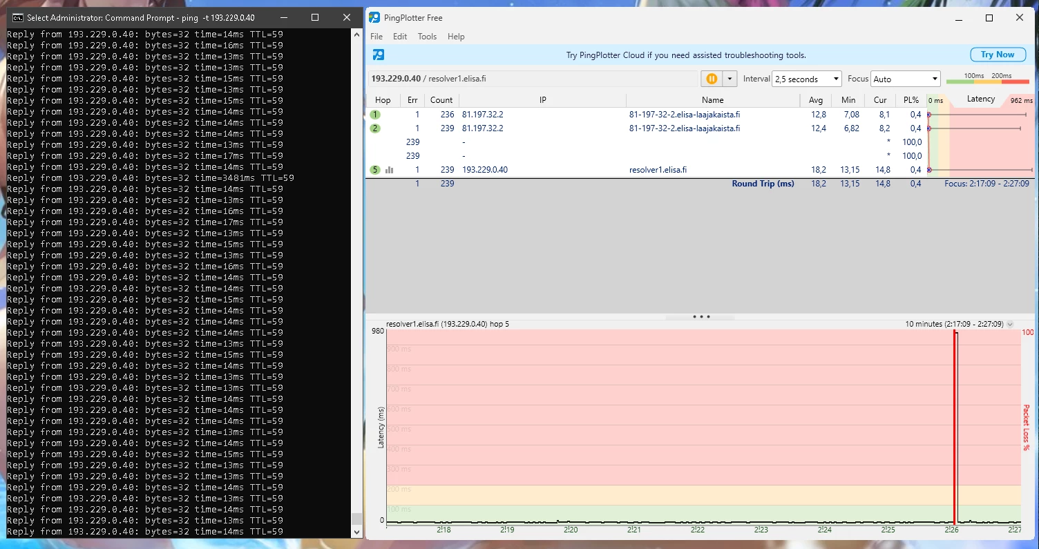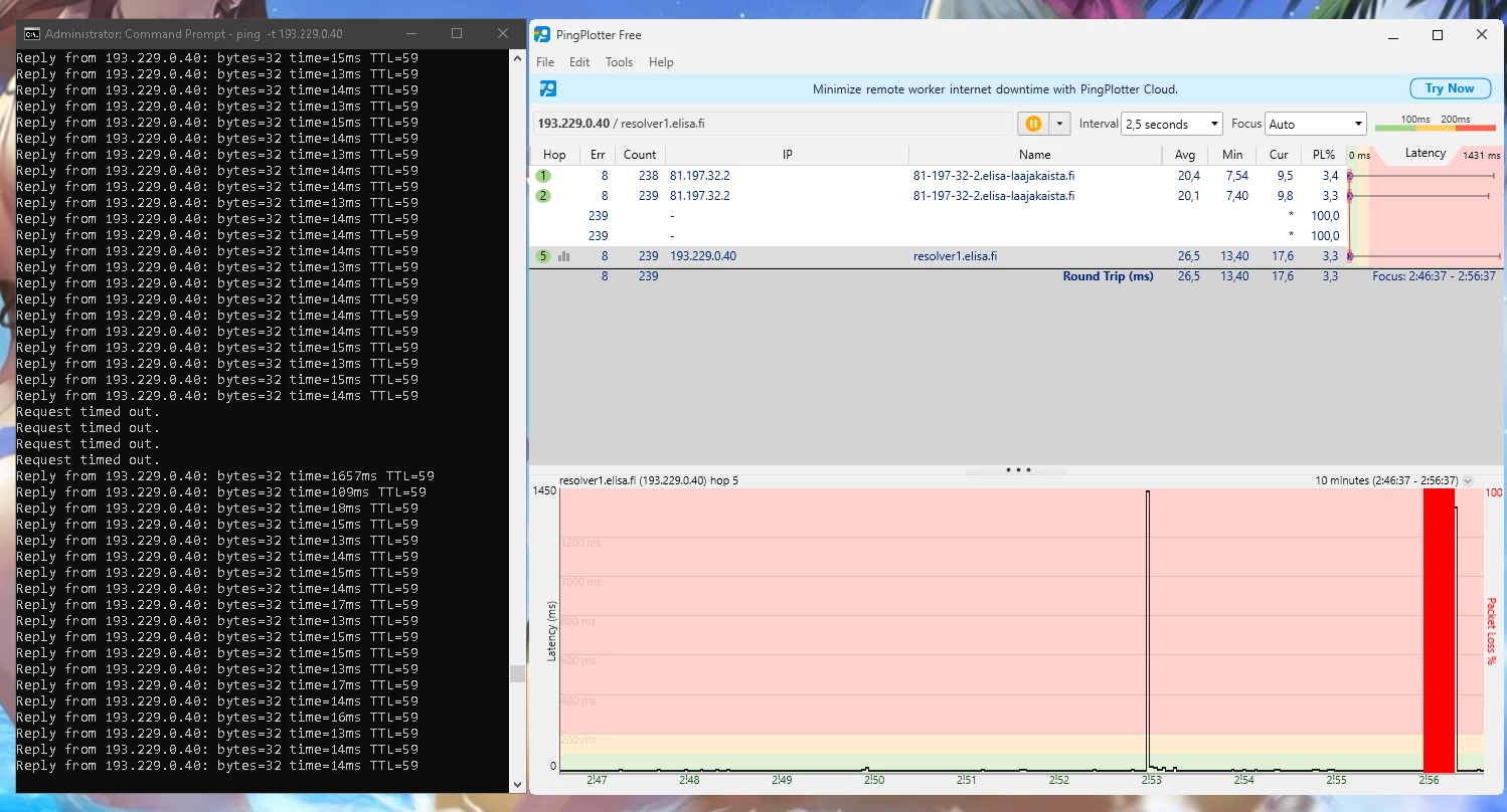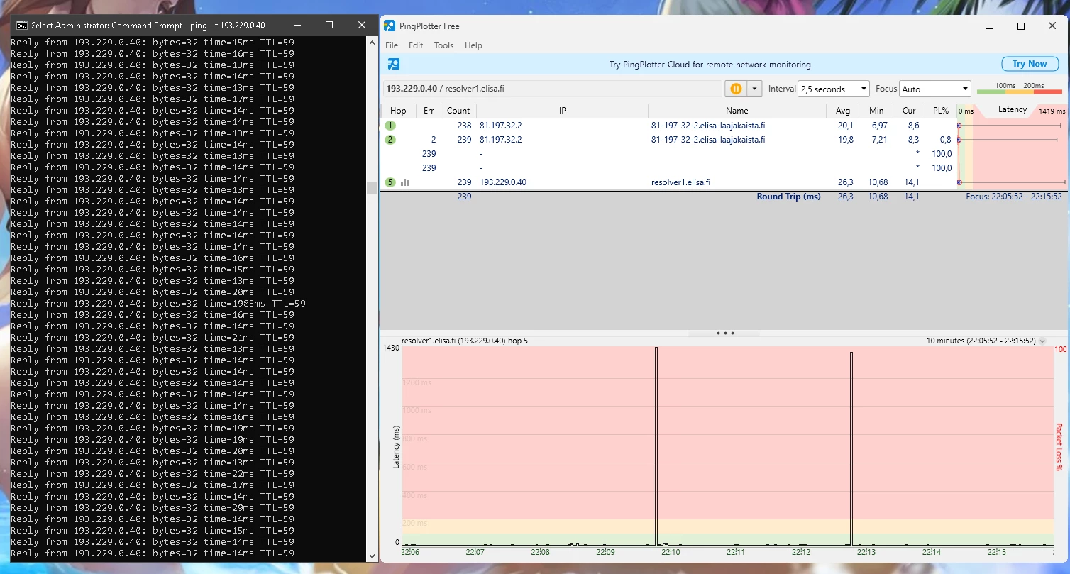 Ja nämä häiriöt jatkunee kohta 2 vuotta. Omalta osalta on kaikki mahdollinen kokeiltu eikä ole korjaantunut. Olisi kiva tietää miksi asiakaspalvelu vaan jarruttaa asiaa eikä yritä auttaa millään lailla vaa tarjoaa irtisanomista tai vaihtamista 5G:hen.