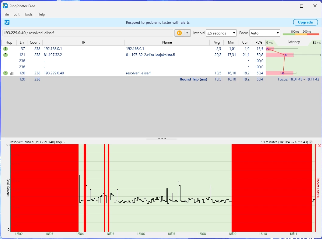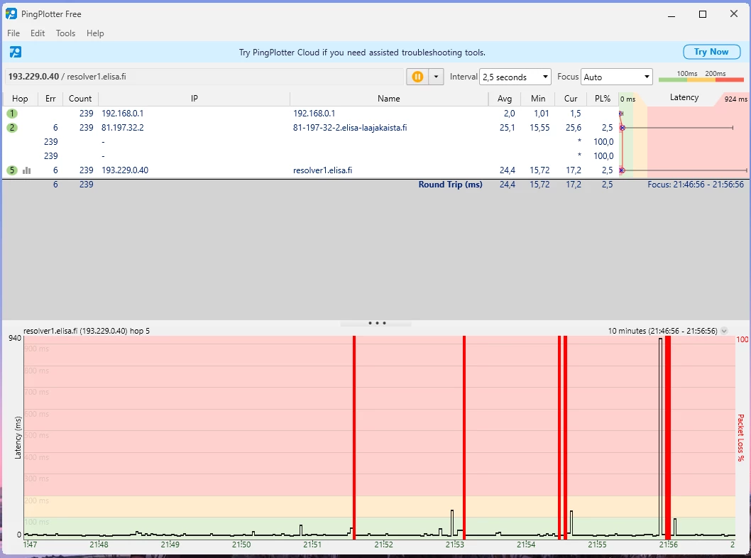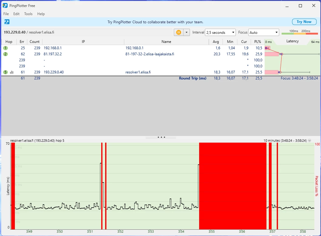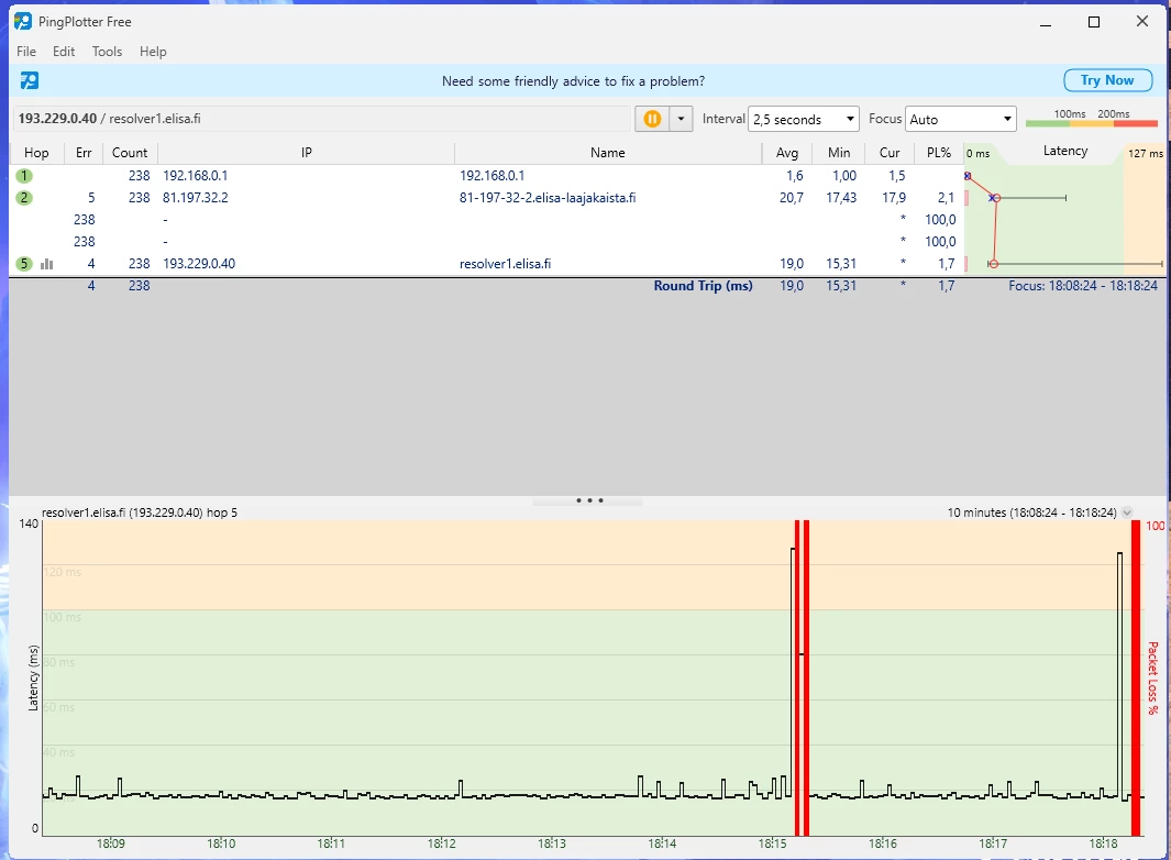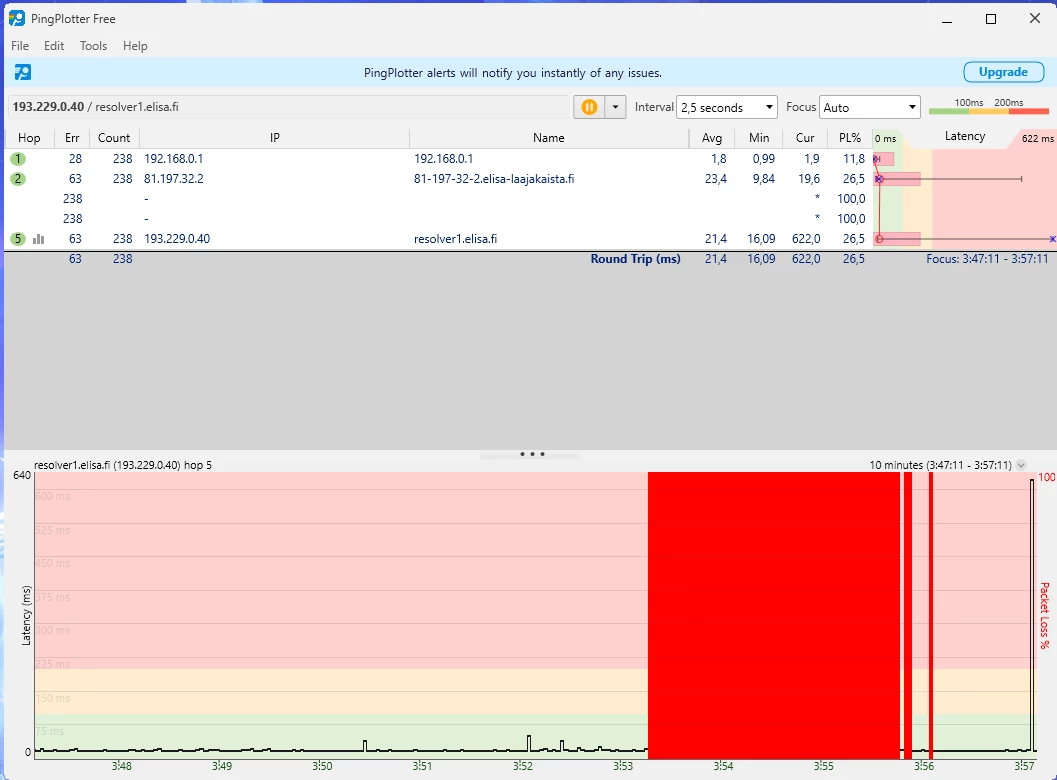 Ja nämä häiriöt jatkunee kohta 2 vuotta. Omalta osalta on kaikki mahdollinen kokeiltu eikä ole korjaantunut. Olisi kiva tietää miksi asiakaspalvelu vaan jarruttaa asiaa eikä yritä auttaa millään lailla vaa tarjoaa irtisanomista tai vaihtamista 5G:hen.