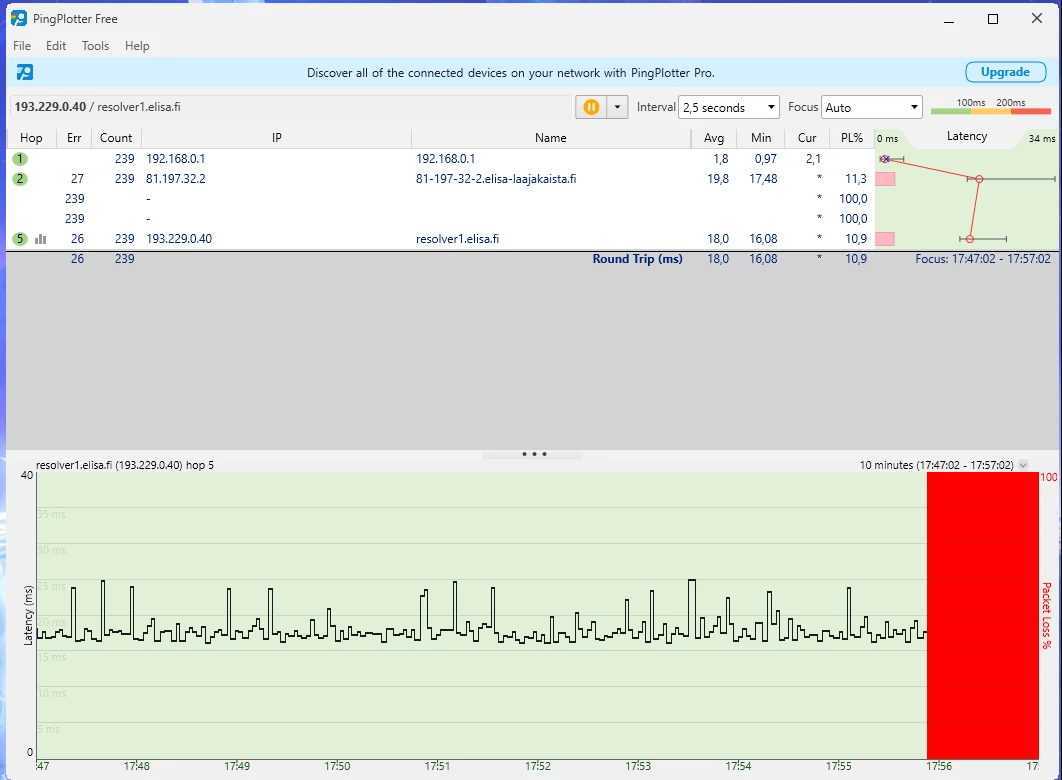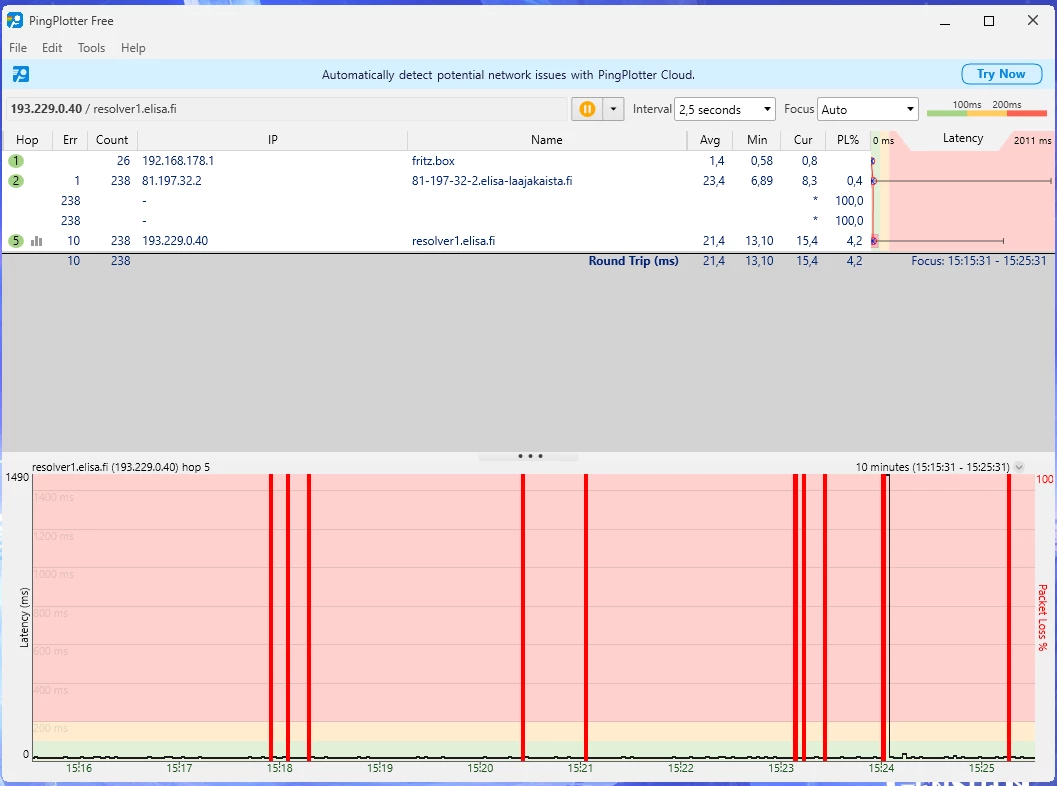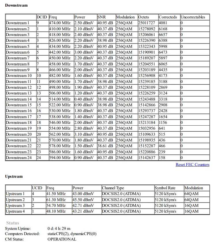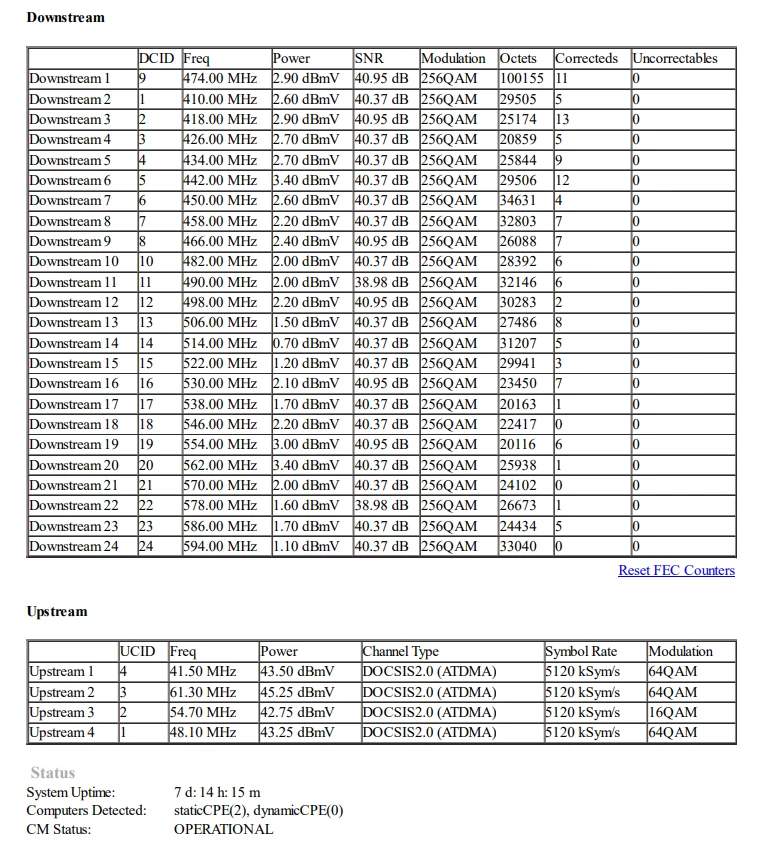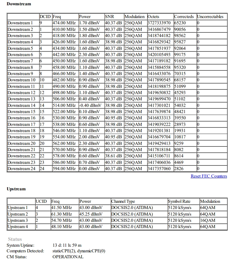 Eli täällä joensuun alueella on ollut tässä kohinaa jo jonkin aikaa ja Elisan asiakaspalvelu sanoo vaan että teidän puolelta ei enää asiaa tutkita. Kohina ilmenee Upstreamin 64QAM putoamisena 4QAM ja 16QAM joka jatkuu tietyn aika välein tai välillä sattuman varaisesti. Nämä häiriöt on jatkuneet 2023 huhtikuun jälkeen kun alueela tehtiin ‘’parannuksia’’ verkkoon ja olen sen jälkeen kamppailut tässä Elisan kanssa että vika saataisiin korjattua. Häiriöt saattaa tapahtua päivittäin, kerran tai pari kertaa viikossa ja joskus jopa 1 kerran kuukauden välein. Samanlaisen keskustelun löysin aikaisemmin tästä viasta ja johon kommentoin tästä viasta ilman minkäänlaista vastausta mutta se on epäilyttävästi suljettu eikä siihen voi kommentoida enää ja tammikuussa lähettämääni viestiini ei edes vastattu ollenkaan ja vikailmoitukseni suljettiin sen jälkeen.