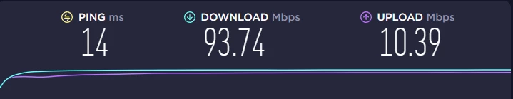 Nettiliittymäni nopeus on 100/10Mb (Elisa Netti kotiin M)