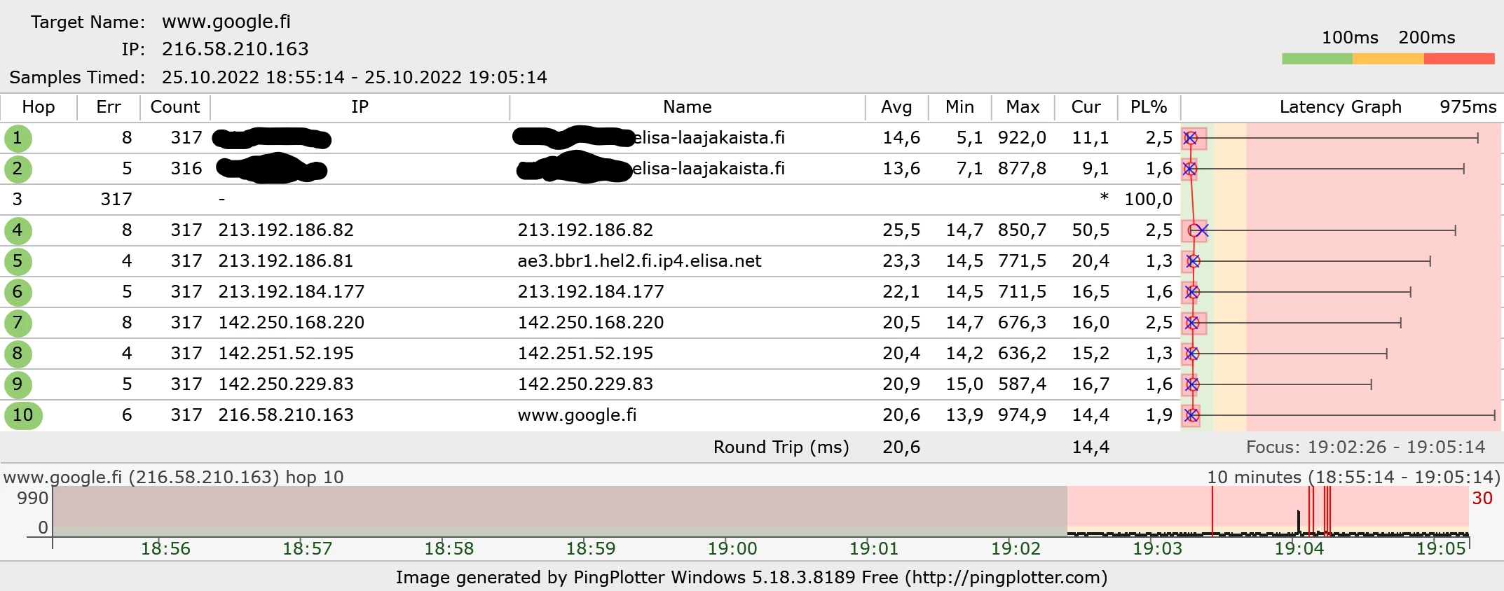 Viimeisen 2 viikon aikana mun Saunalahti Kotikuitu 250M on pätkinyt erittäin paljon, modeemina toimii Kotiboksi Arris TG2482. Pätkimisen huomaa nettipelejä pelattaessa helposti, ping on välillä 300 ja packet lossia 30%. Latausnopeus on sitä 240 luokkaa eli aika normaali. Pleikkarin ja modeemin uudelleenkäynnistys ei auta yhtään, oon kokeillu pelata LAN kaapelilla ja ilman mutta silti järkyttävä pätkiminen.