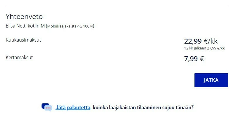 Menin Elisan nettisivujen mukaan hakemaan nettiä uuteen kotiini. Laitoin hakuun osoitteeni ja liittymäksi valitsin 100M.