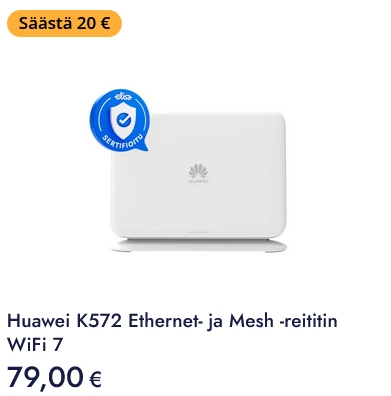 Haluaisin varmistaa seuraavan asian: Voiko Huawei K572 Ethernet- ja Mesh -reititin WiFi 7 toimia Elisa Netti Perus 100M (VDSL2) -liittymässä, vaikka laitteessa ei ole sisäänrakennettua ADSL/VDSL2-modeemia?