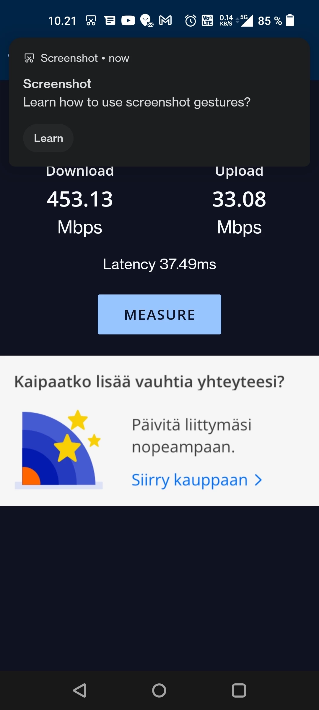 Viimeiseen viikkoon ei 5G liittymän mobiilidata ole toiminut, nytkin verkkoa ei näy lainkaan ja kirjoitan tätä wifi yhteyden kautta. Hetkittäin yhteys toimii jotenkuten mutta nopeus huojuu todella paljon ja yleensä muutaman minuutin kuluttua verkko katoaa kokonaan. Eniten tässä ihmetyttää ettei Elisan vikapuolella reagoida mitenkään?