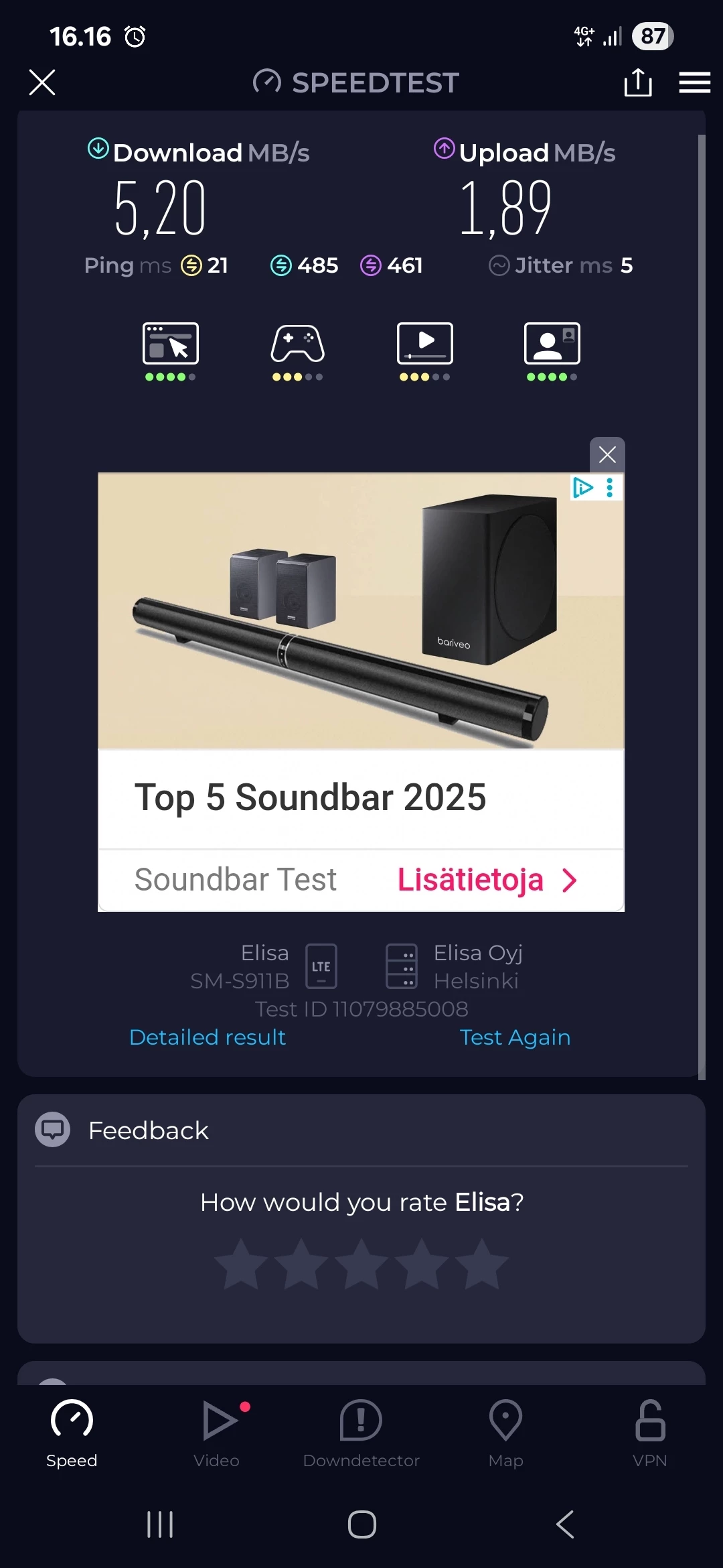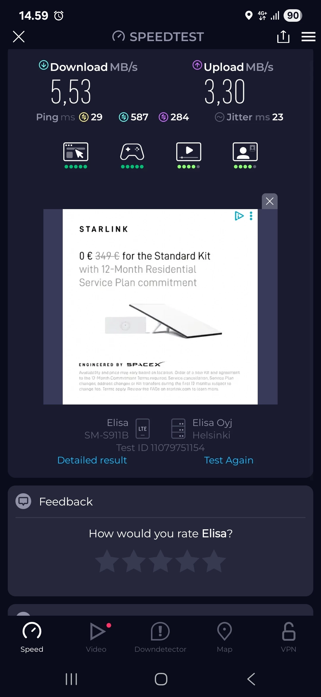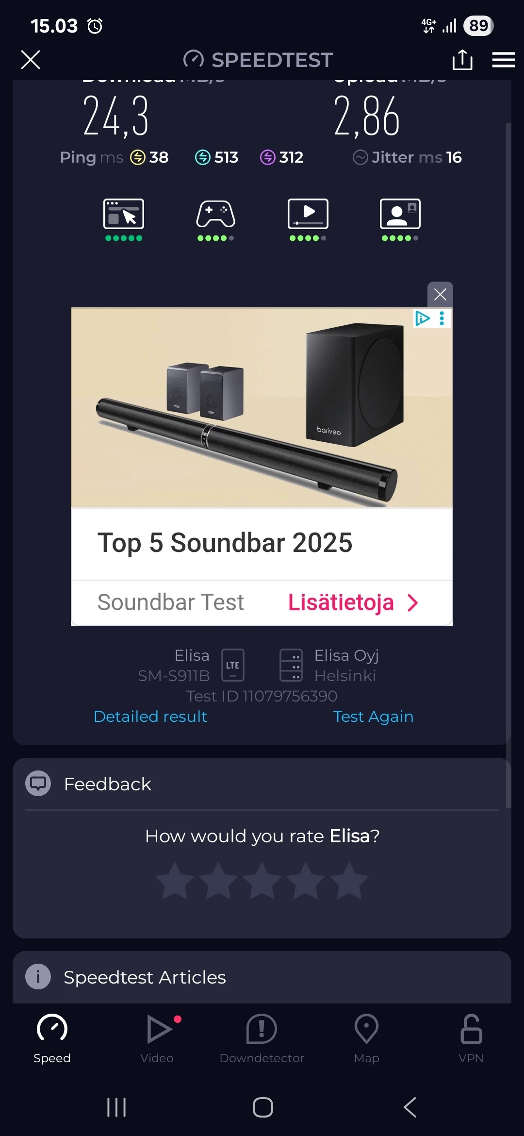 Yllämainittu liitymä. Täällä Helsingissä mittailut speedtestillä nopeuksia, ja huonolta näyttää….