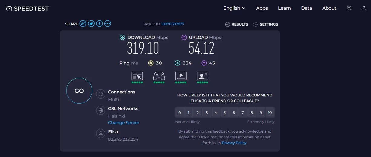 Mahtavaa! kiitos paljon Elisa! Eli 5g on nyt päivitetty lähimastoon.