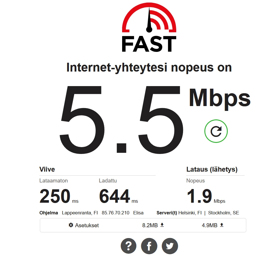 Puhelimessa taas Elisa 4G Rajaton 200M ja sillä pääsee huimaan puolen megan latausnopeuteen.