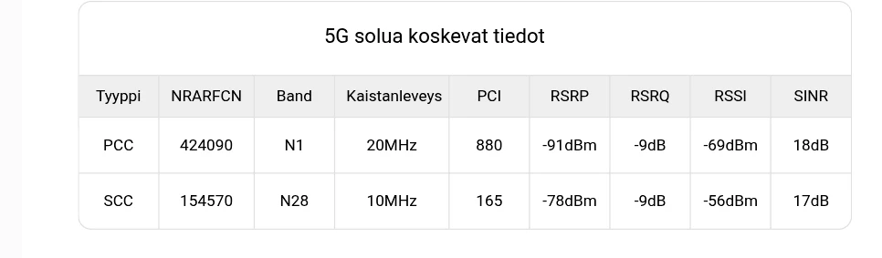 5g-signaalit kuvassa (puhelimellani siirryin myös paremmalle signaalialueelle):