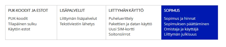 En tiedä onko kaikissa matkapuhelinliittymissä, mutta yritin omilta sivuilta etsiä liittymän sopimusta.