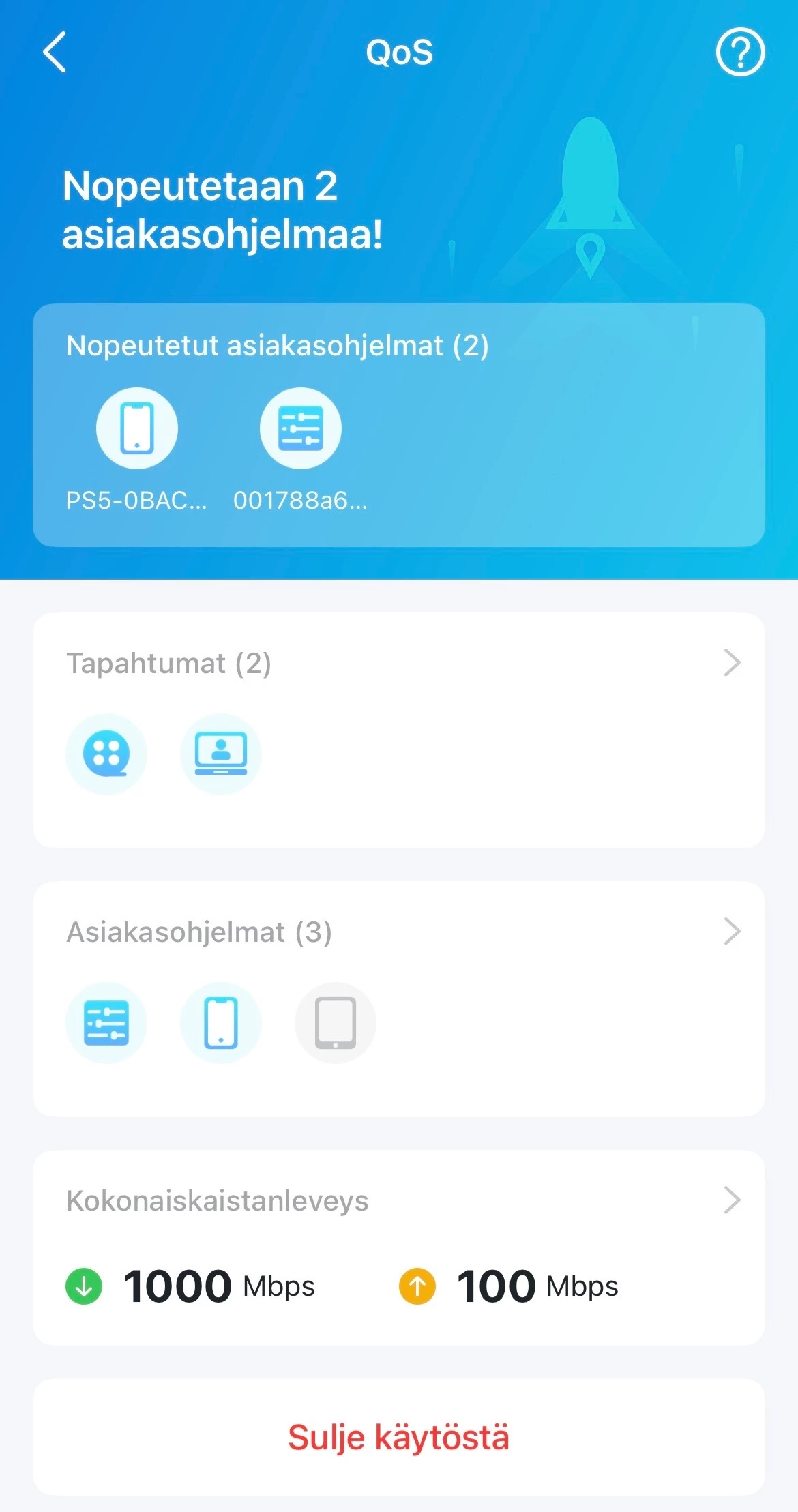 Uusin juuri mobiilireitittimen malliin Huawei 5.5 CPE H165 (wifi7), ja mesh-verkon kolmella yksiköllä TP-Link Deco X50 AX3000 (wifi6) Elisalta. Lisäksi 1000Mb 5G -liittymä.