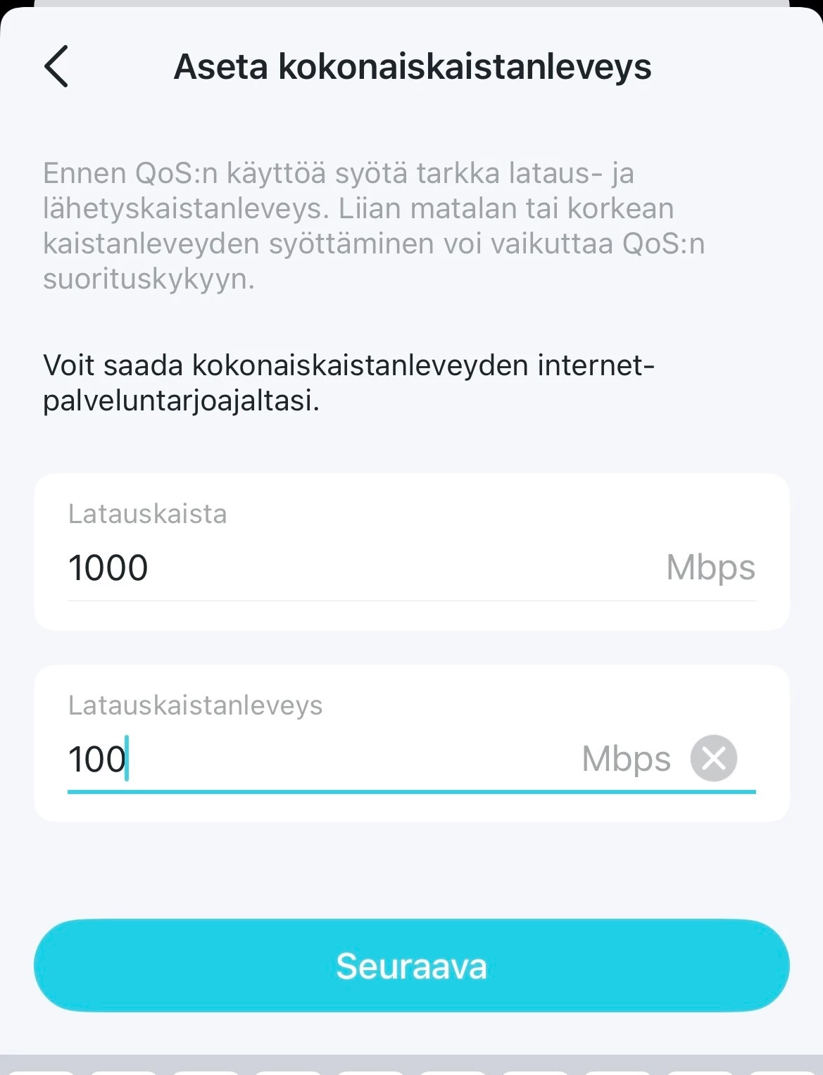 Download 172, Upload 61,1, ping 23. Näillä luvuilla Teamsit toimi ja kameraakin saattoi vihdoin käyttää.