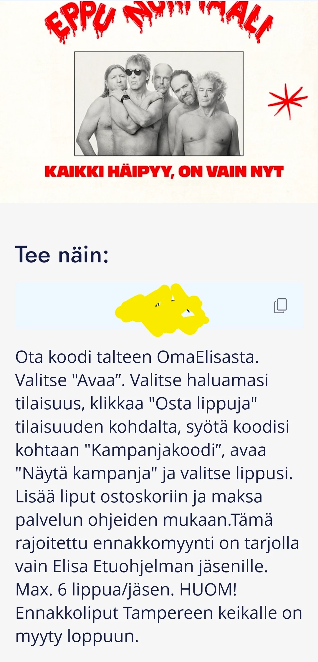 Mistä löytyy ennakkokoodi eppujen keikkojen ennakkomyyntiin?