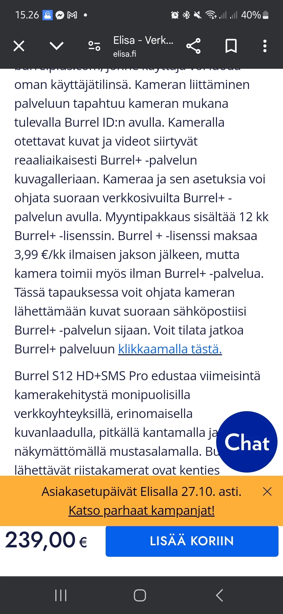 Mistä saan burrel kameraan ostettua lisenssin uudelleen, kun on aika loppumassa? Elisan sivuilla on linkki mistä pitäisi saada ostettua mutta se ei kyllä toimi.