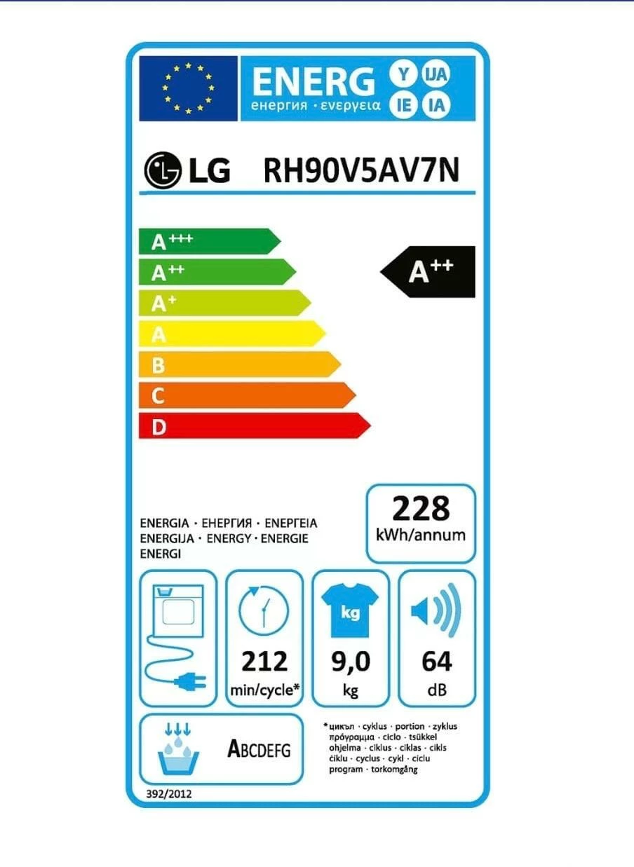 Tilasin LG 90V5AV7N kuivaurummum ja elisan verkkosivuilla luki että sen energialuokka olisi ollut A++, mutta kun tuote tuli avawsin kannen siinä olevassa lapussa luki että se olisi ollut energialuokkaa D. Nimi täsmäsi mutta muut tiedot eivät ja laput näyttivät muutenkin erilaiselta. Eka on kuva siitä mitä oli verkkosivuilla ja tokaksi on kuva siitä mitä oli paketissa.
