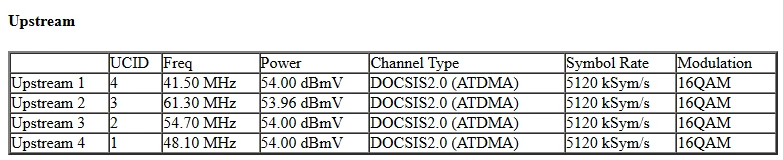Tämä on ensimmäinen kerta kun luen näitä arvoja enkä tiedä yhtään miltä näiden pitäisi näyttää. Tekoälyltä kun kysyin niin ilmeisesti dBmV:n pitäisi olla alle 48 ja modulaation 64QAM (välillä huomaan yhden tai useamman kääntyvän 64QAM:ksi mutta ikinä ei kymmentä sekuntia pidempään siinä pysy). Haluan kuitenkin kysyä myös täältä ennen kuin jätän soittopyyntöä sillä aika usein on tullut pelkkää potaskaa vastaukseksi GPT:ltä.