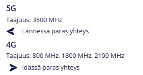 - Tietoa ilmansuunnista ja taajuuksista: Tuomme esille tiedot ilmansuunnista ja verkon taajuuksista. Tämä helpottaa ymmärtämään, miten ilmansuunnat vaikuttavat kuuluvuuteen ja millä taajuuksilla verkko toimii. Tästä voi olla apua esimerkiksi mobiilireitittimen asennuksessa.