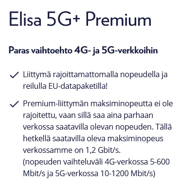 Eli kumpikohan on oikea nopeus 5G+ Premium-liittymässä eli max 1.2Gbit/s vai 2Gbit/s? Eli kun katsoo lisätiedot, niin nopeus heittää usemapi sata Mbit/s alaspäin.