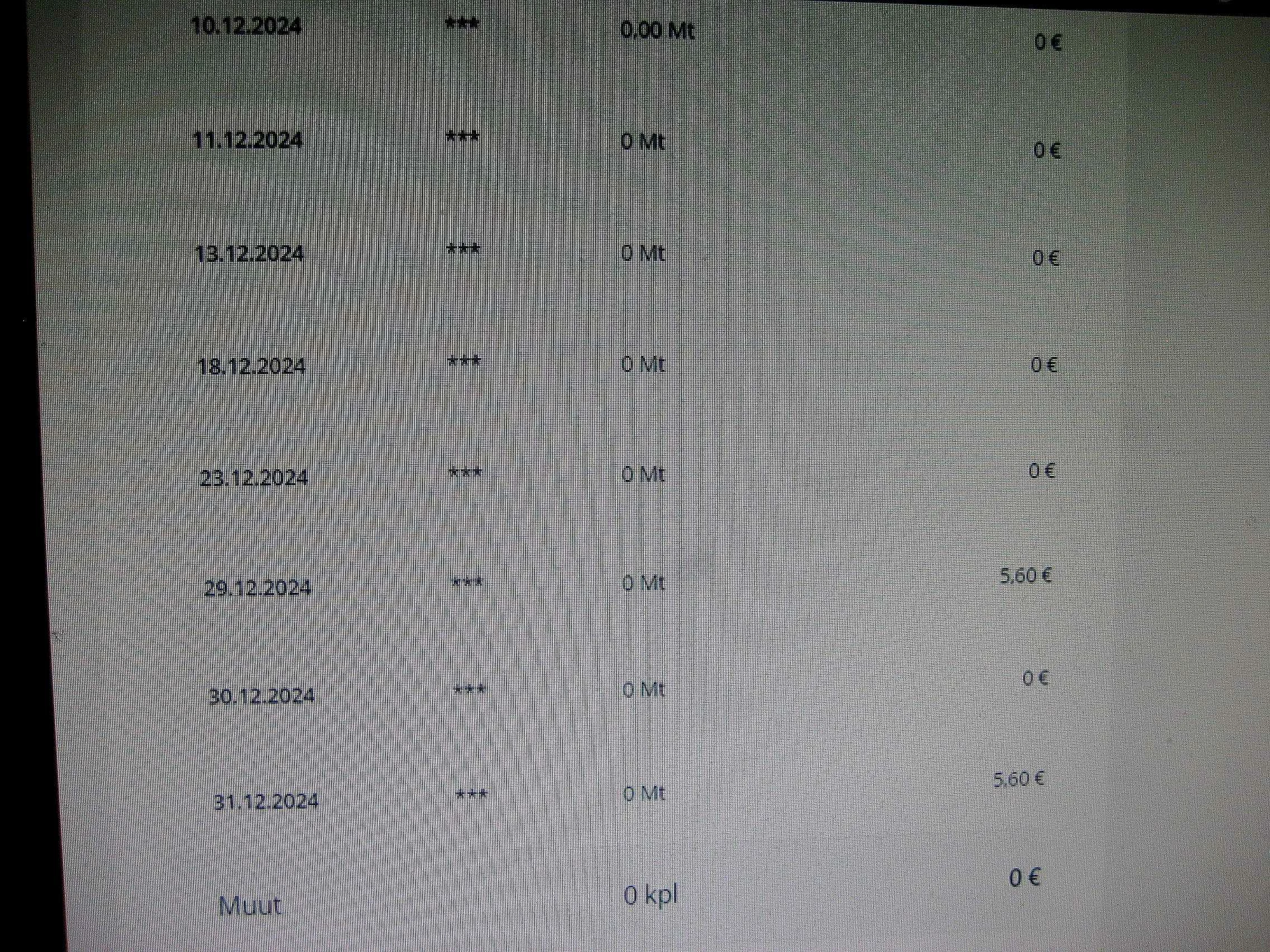 enää alle euro. katsoin että data 0,00 Mt, hinta 5,60 e.