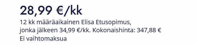 Onko muita, joille liittymän vaihdon yhteydessä tai muutoin tullut yllätyksenä, että Elisan liittymät onkin määräaikainen? Olen ottanut oman liittymän puolisen vuotta sitten ja ollut siinä käsityksessä, että tarjoushinta on määräaikainen, ei koko sopimus. Olen pitkään ollut Elisalla asiakkaana, välissä lyhyt pätkä toisella operaattorilla, eikä näitä sopimuksen määräaikaisuuksia ole kyllä hetkeen ollut.