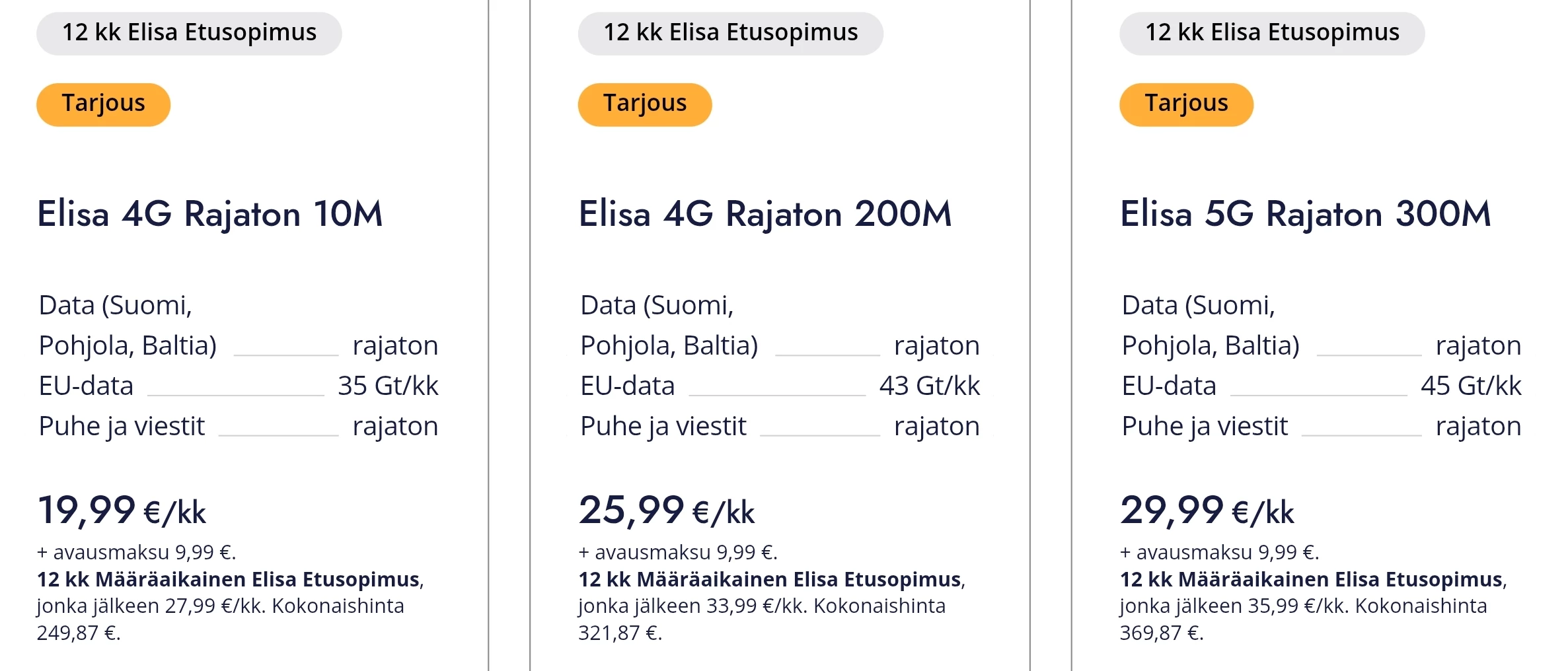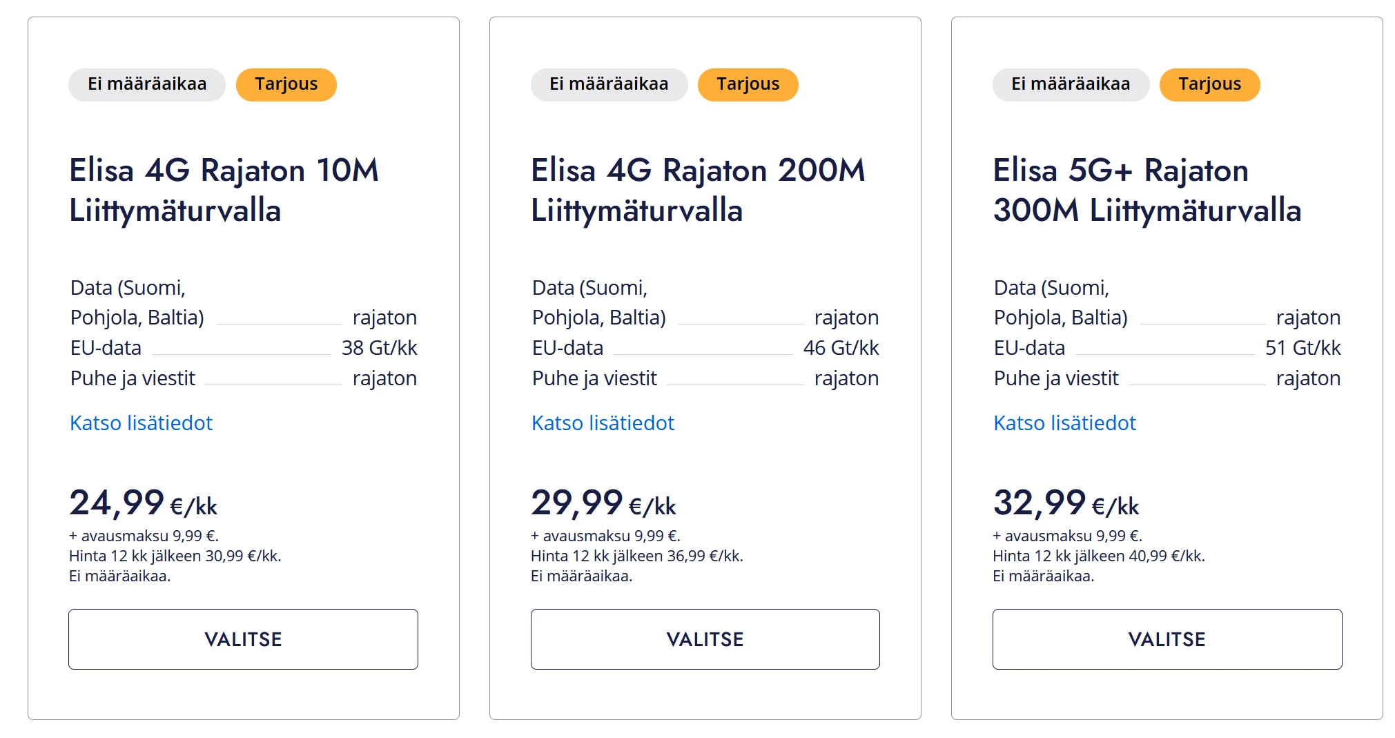 Kummasti Elisalta hävisi määräaikaiset liittymät ja hieman kalliimat hinnat.