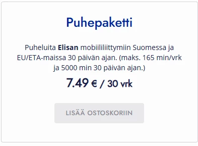 Ostin puhe paketin 7,49€ mutta silti en pysty soittamaan mihinkään numeroon. miksi? mitä miun pitää tehdä vai onko joku ongelmaa?