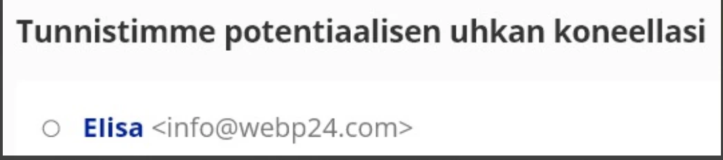 No tuossa olisi ainesta jo vahvaksi salasanaksi. 😶 Jos tosiaan pääsi suodattimien läpi ja siinä on tietojenkalastelua, voit edelleenlähettää sen meille osoitteeseen abuse (at) elisa.fi