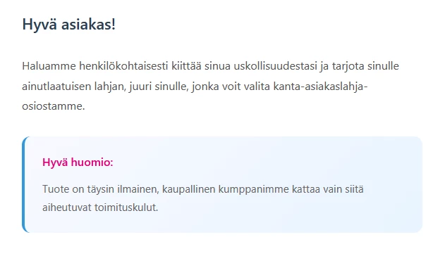 Arvoisa asiakas,