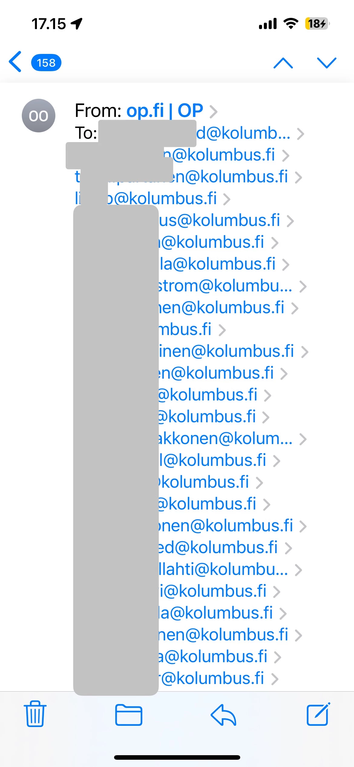 Tietenkin tuo op.fi | OP on alias jollekin tekaistulle mailboxille, josta näitä tulee, mutta aika surullista, ettei yhtään kolumbuksesta poikkeavaa vastaanottajaa näy viestissä.