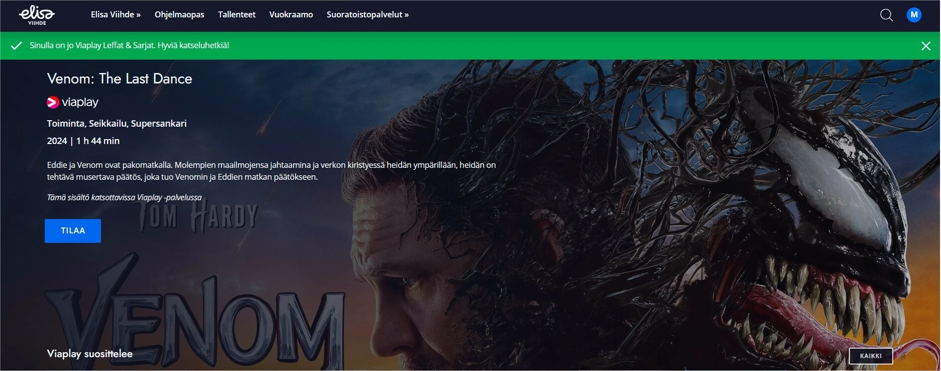 Elisan Viaplayn tilasin muistaakseni 16.06 2025
